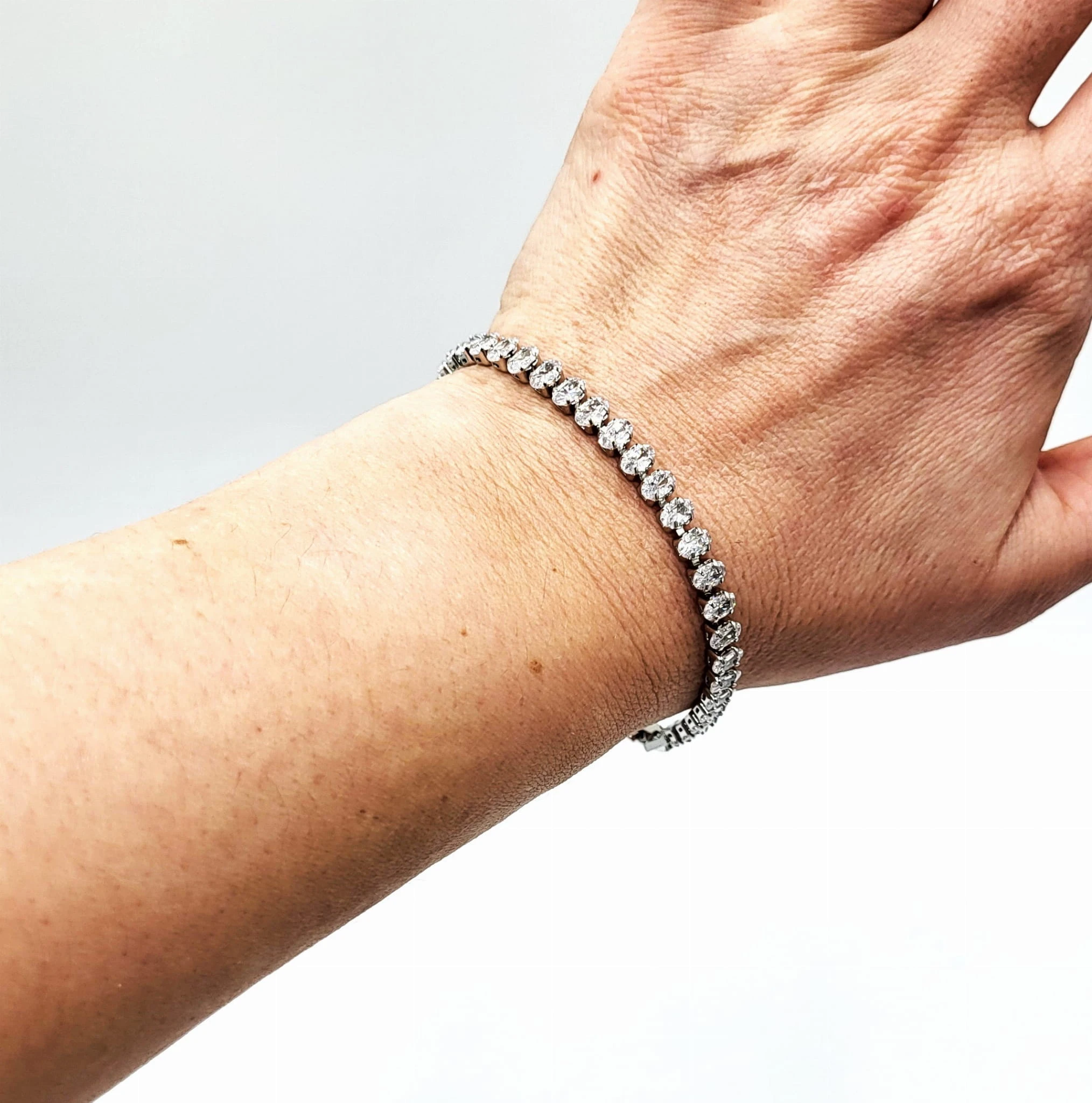 Elegancka damska bransoletka w kolorze srebrnym, ozdobiona błyszczącymi cyrkoniami — idealny dodatek na co dzień i na wyjątkowe okazje. Subtelny, ponadczasowy design sprawia, że biżuteria doskonale komponuje się zarówno z casualowymi, jak i wieczorowymi stylizacjami. Precyzyjne osadzenie kryształków zapewnia intensywny blask, a staranne wykonanie gwarantuje trwałość i komfort noszenia.