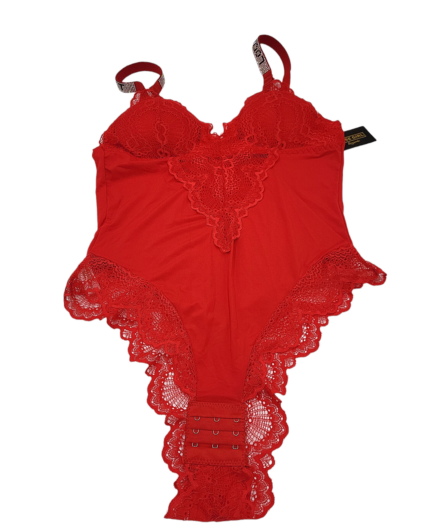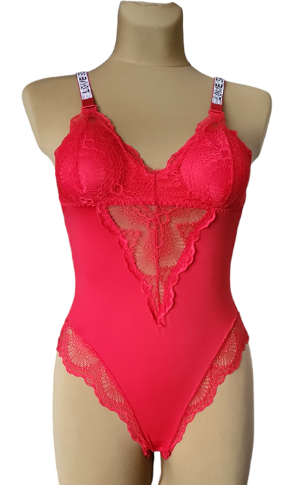 Zmysłowe body z wstawkami z koronki oraz odpinanymi ramiączkami zdobionymi cyrkoniami. Wykonane z miłego i elastycznego materiału, zapewnią komfort noszenia. Jeśli chcesz poczuć się kobieco i seksowne nasz model będzie idealnym rozwiązaniem.