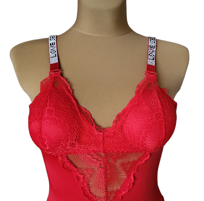 Body damskie koronka ramiączko cyrkonie czerwone L/XL