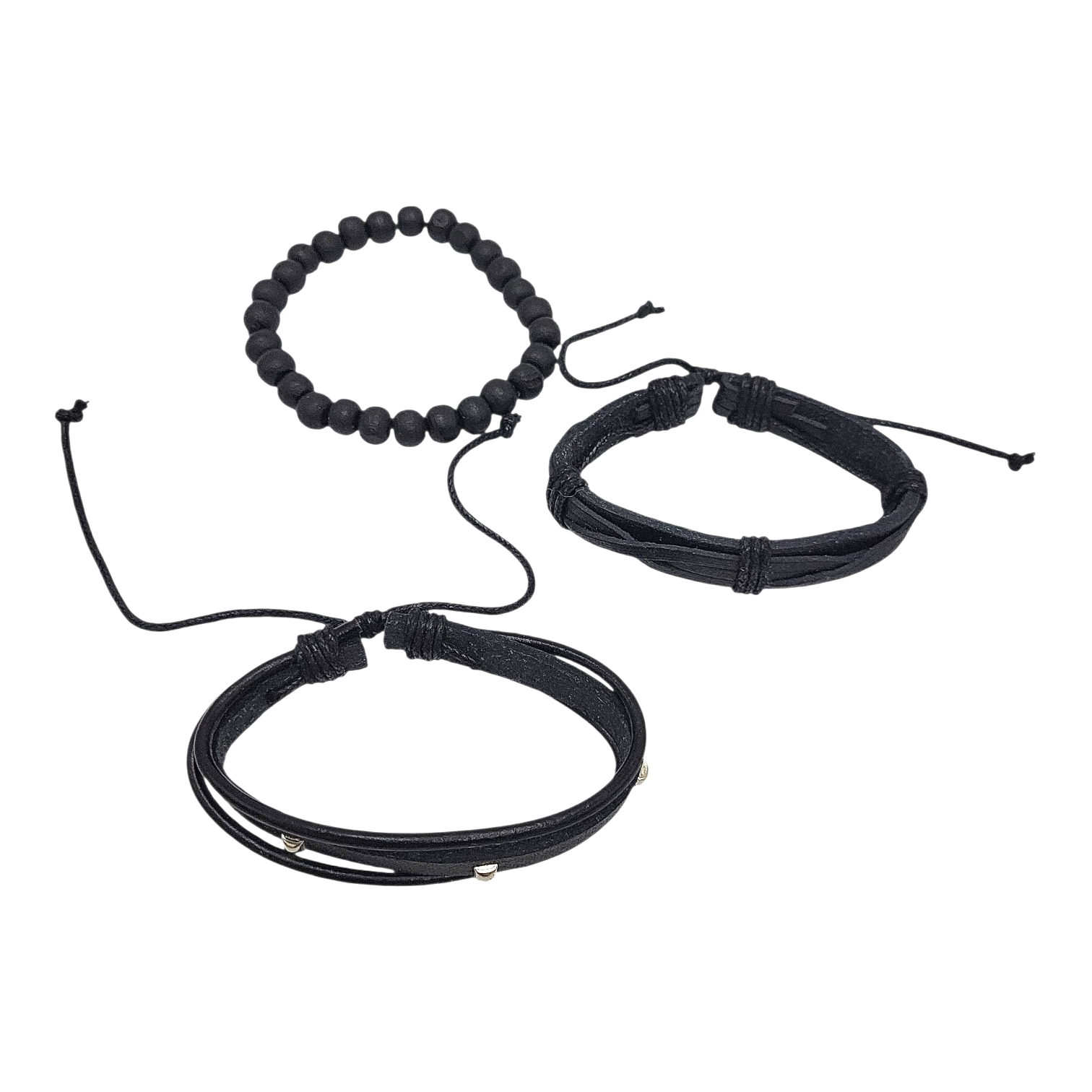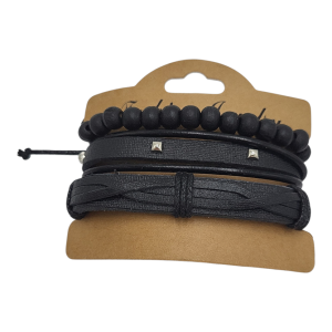 Bransoletka męska rzemyk czarna 3 elementy