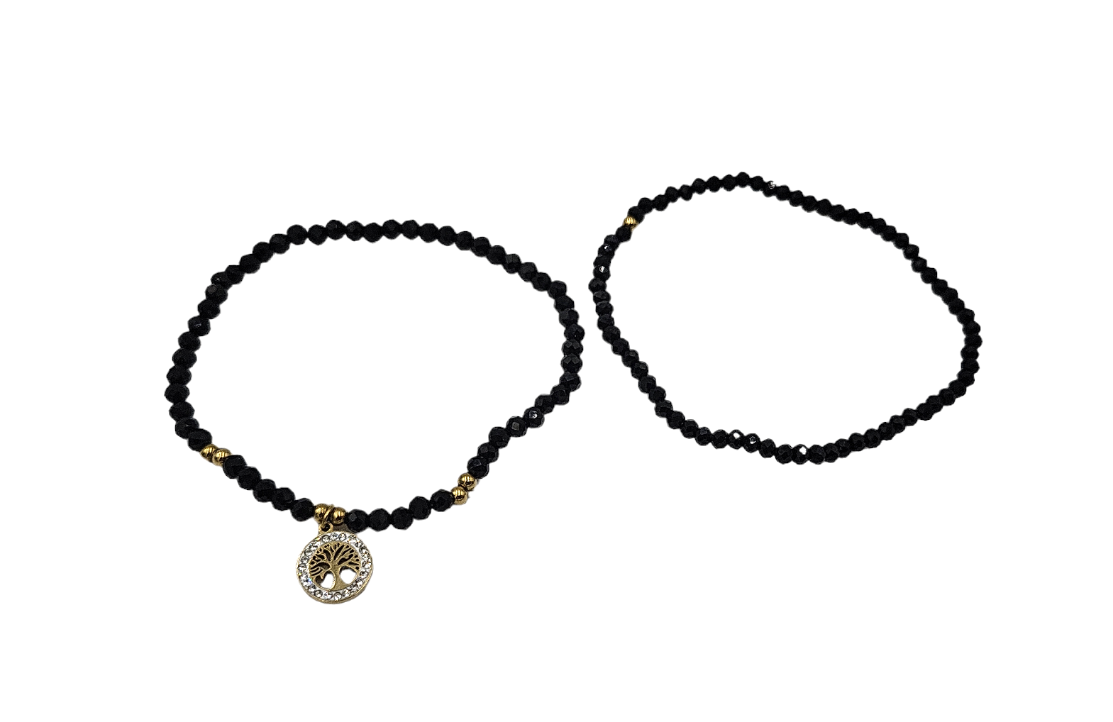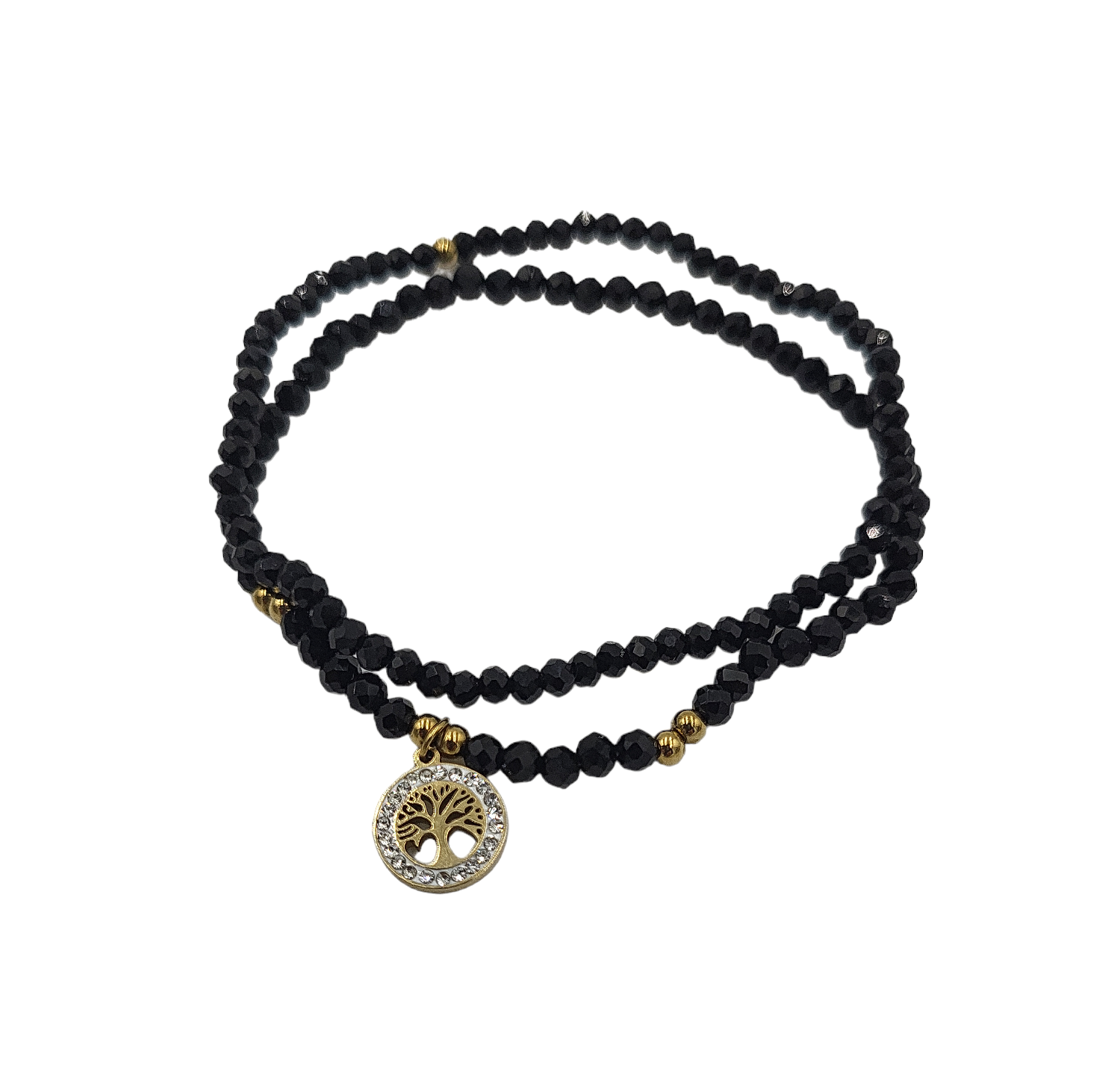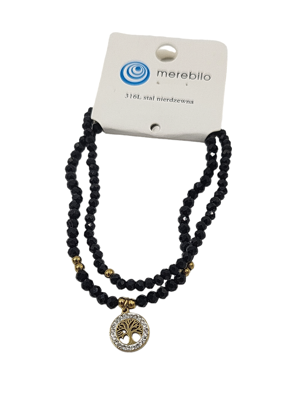 Bransoletka podwójna kryształek czarny drzewko szczęścia
