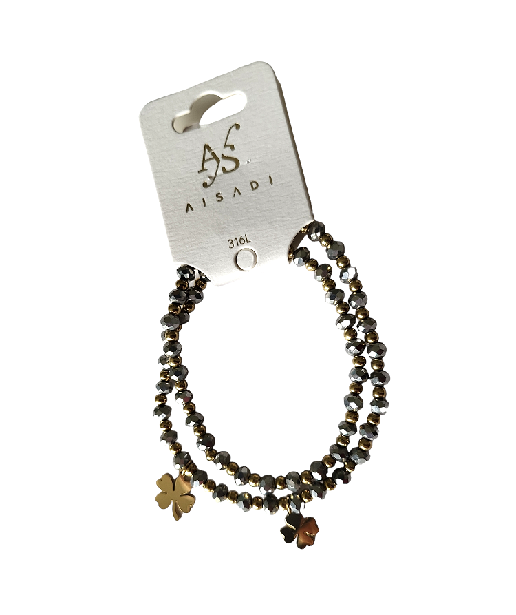 Bransoletka podwójna kryształek srebrny koniczynka