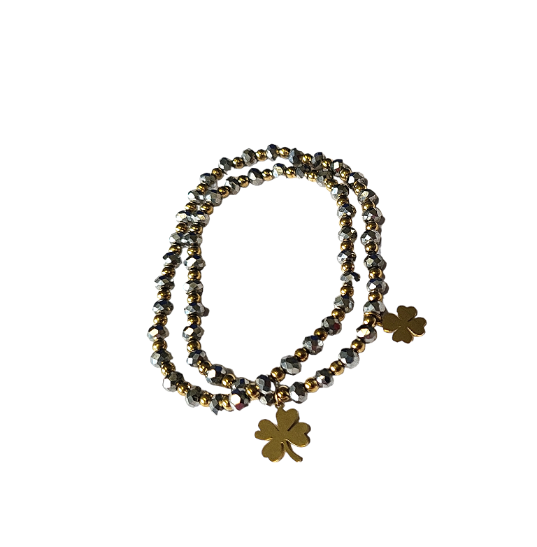 Podwójna bransoletka kryształek srebrny koniczynka