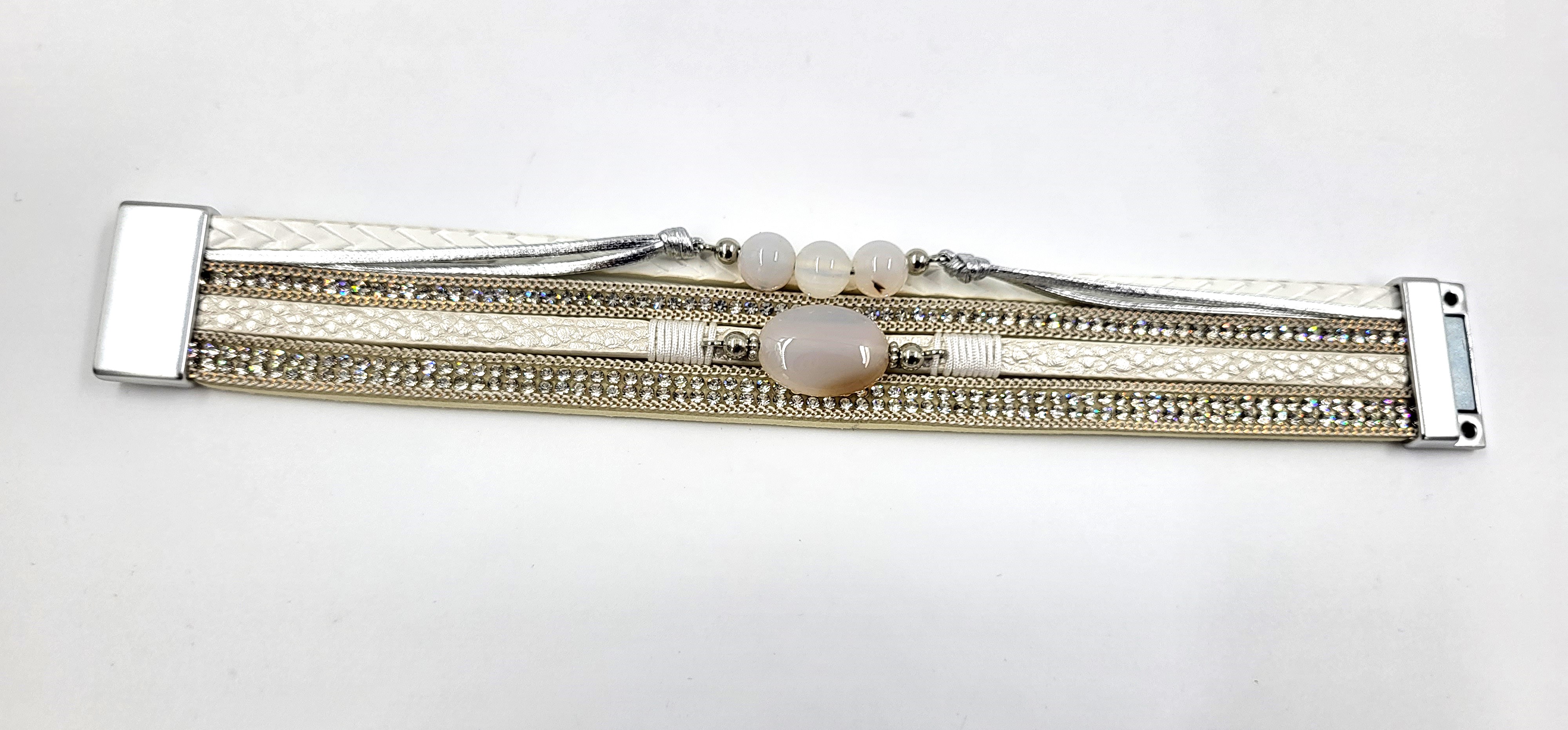 Bransoletka z rzemykiem na magnes kamień biała ecre