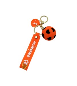 Piłka sportowa w kolorze czarno pomarańczowym. Brelok z ozdobną dodatkową smyczką.