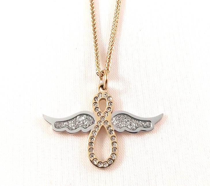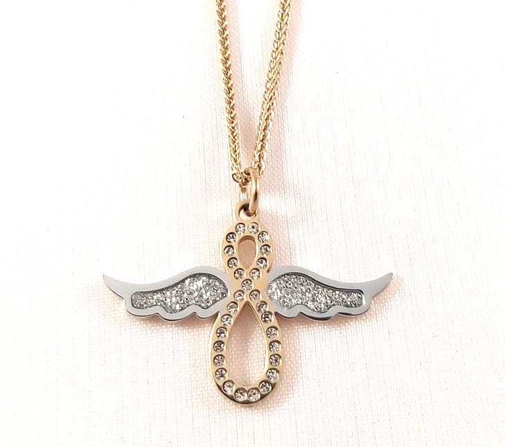 Celebrytka łańcuszek Blueberry złota skrzydła nieskończoność stal nierdzewna
