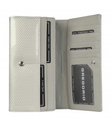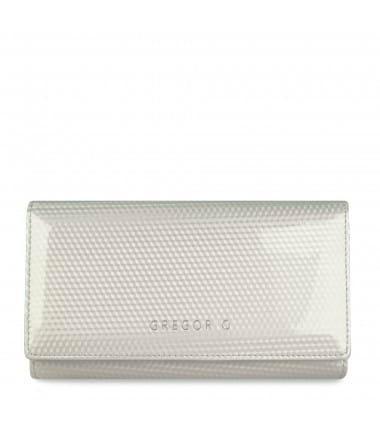 Portfel Gregorio to doskonały wybór dla osób ceniących sobie elegancję oraz najwyższą jakość wykonania. Wykonany z prawdziwej skóry, wyróżnia się subtelnym, perłowym odcieniem oraz unikalnym wzorem, który dodaje mu charakteru. Ten duży portfel oferuje nie tylko stylowy wygląd, ale także funkcjonalność. Z licznymi przegródkami na karty, dokumenty oraz kieszenią na monety, umożliwia wygodne przechowywanie wszystkich niezbędnych akcesoriów.