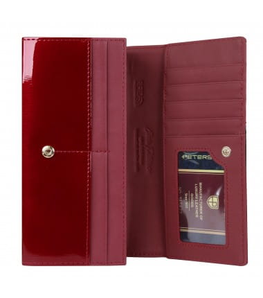 Duży portfel damski skórzany PETERSON czerwony lakier