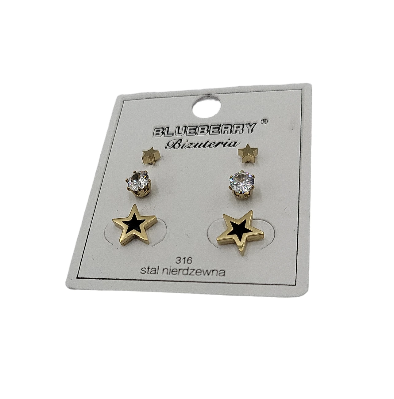 Kolczyki 3 w 1 Blueberry gwiazdki cyrkonie