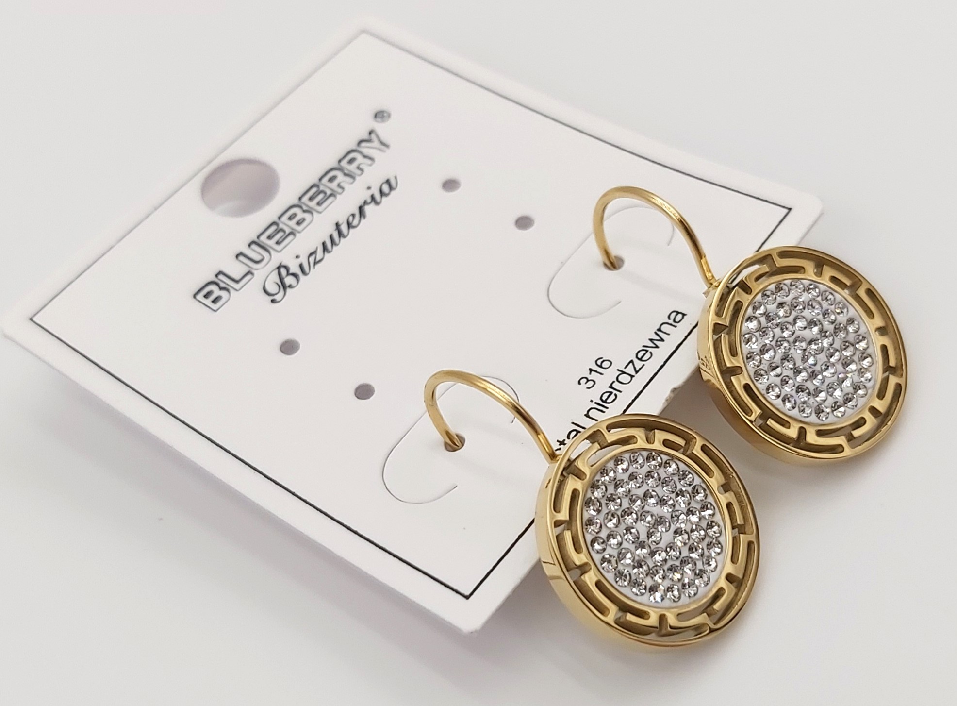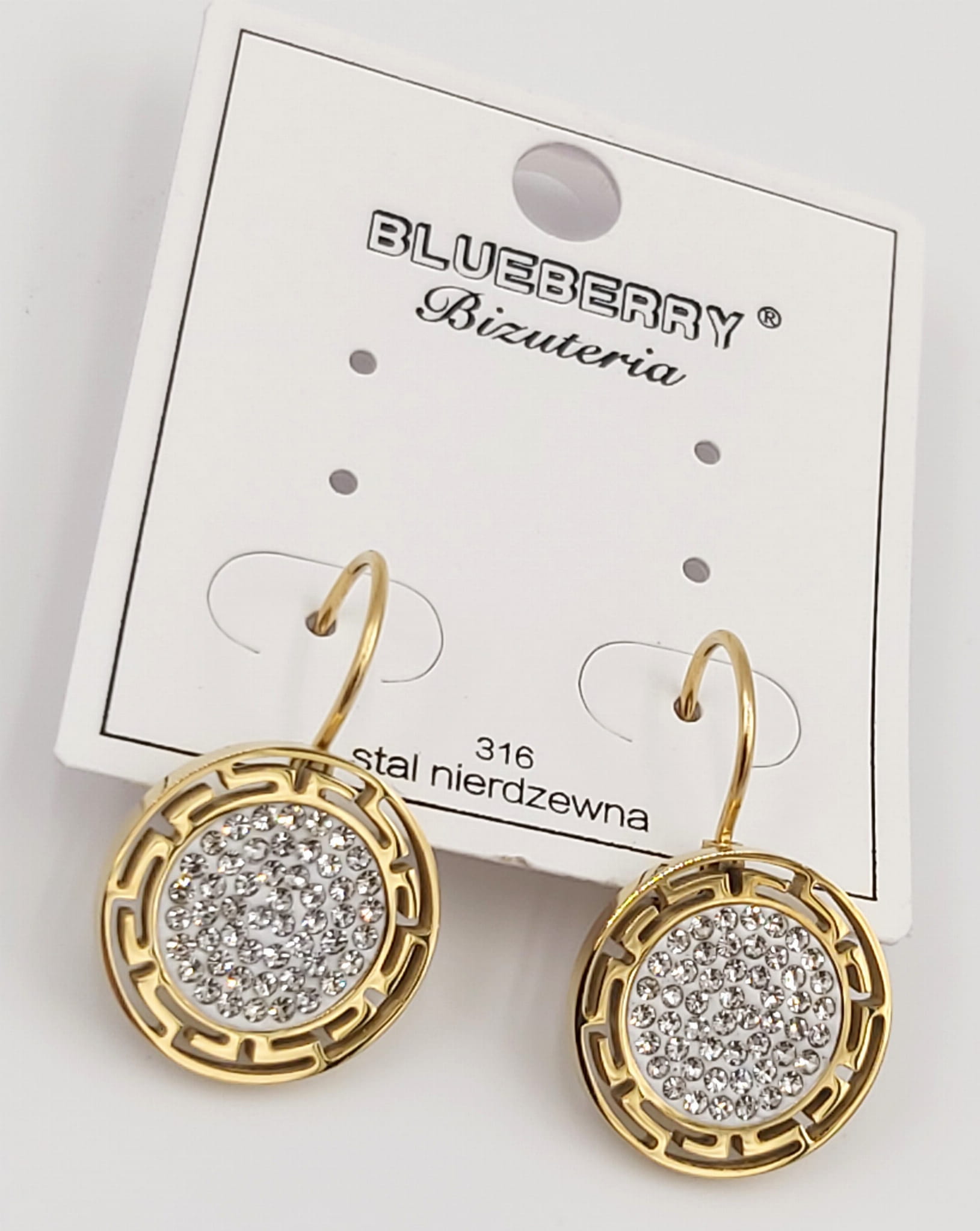 Kolczyki grecki wzór z cyrkoniami firmy BLUEBERRY wykonane z wysokiej jakości stali nierdzewnej 316L.