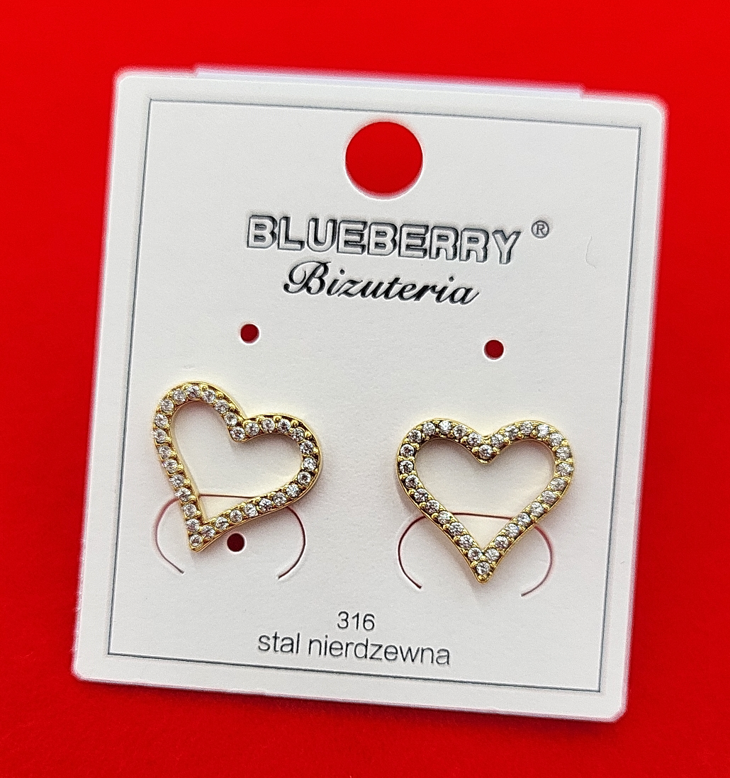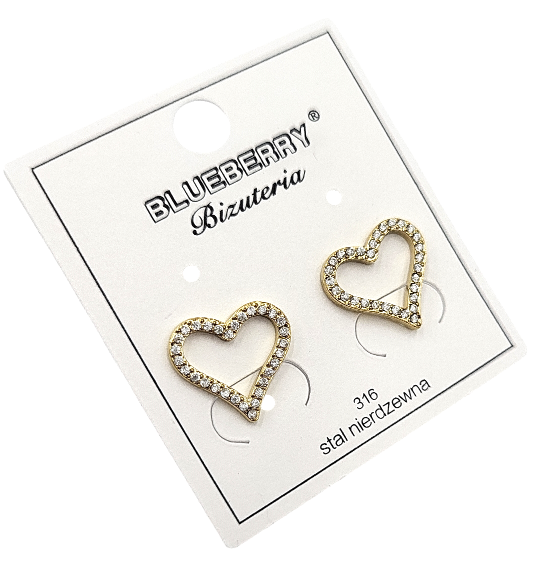 Kolczyki serca z cyrkoniami firmy BLUEBERRY wykonane z wysokiej jakości stali nierdzewnej 316L.