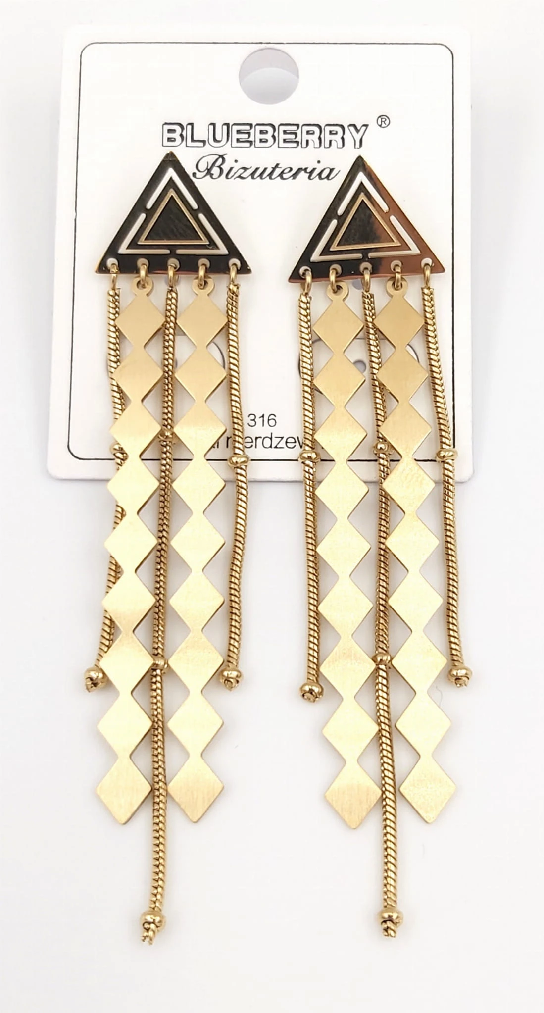 Kolczyki trójkąt wiszące firmy BLUEBERRY wykonane z wysokiej jakości stali nierdzewnej 316L.