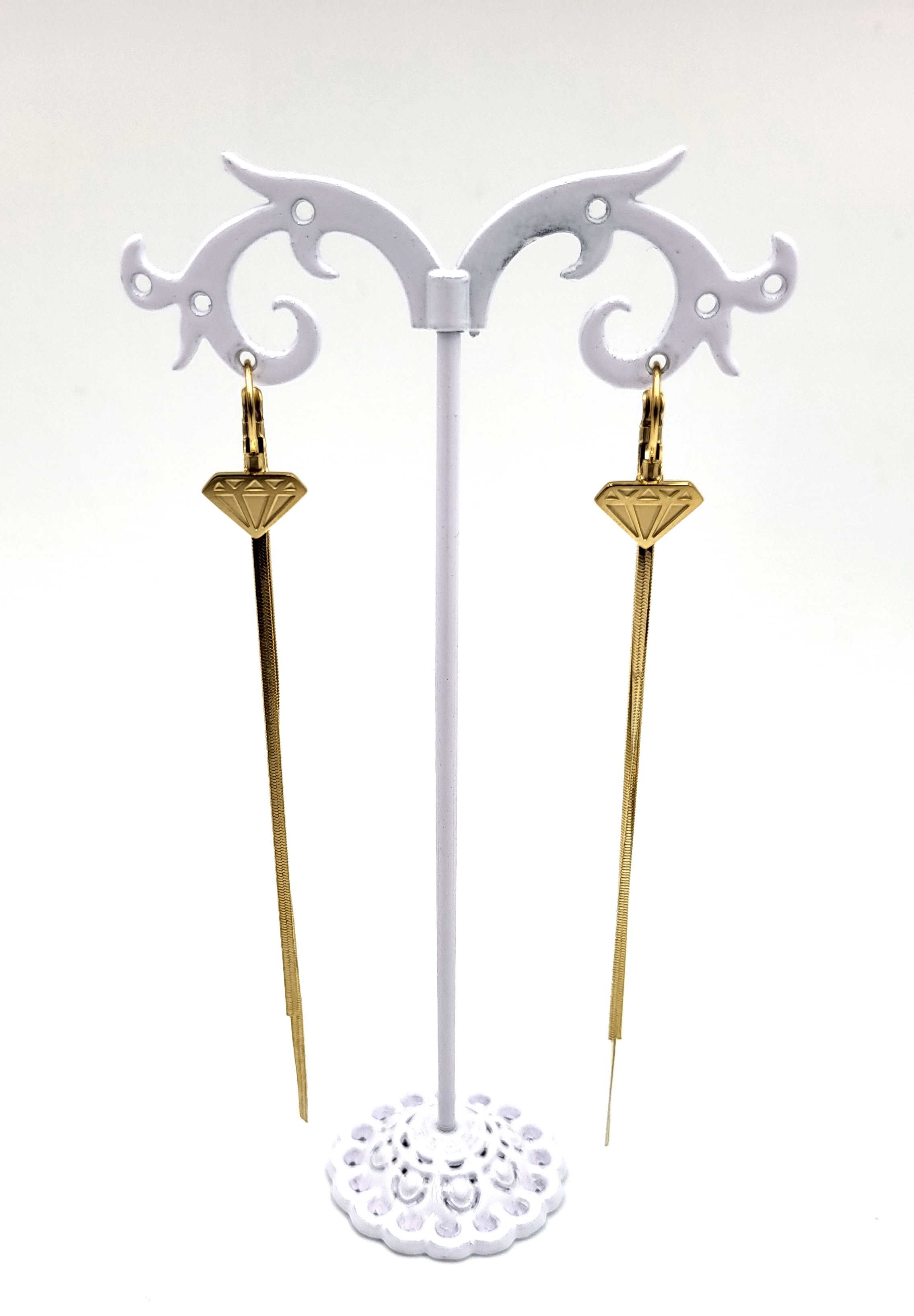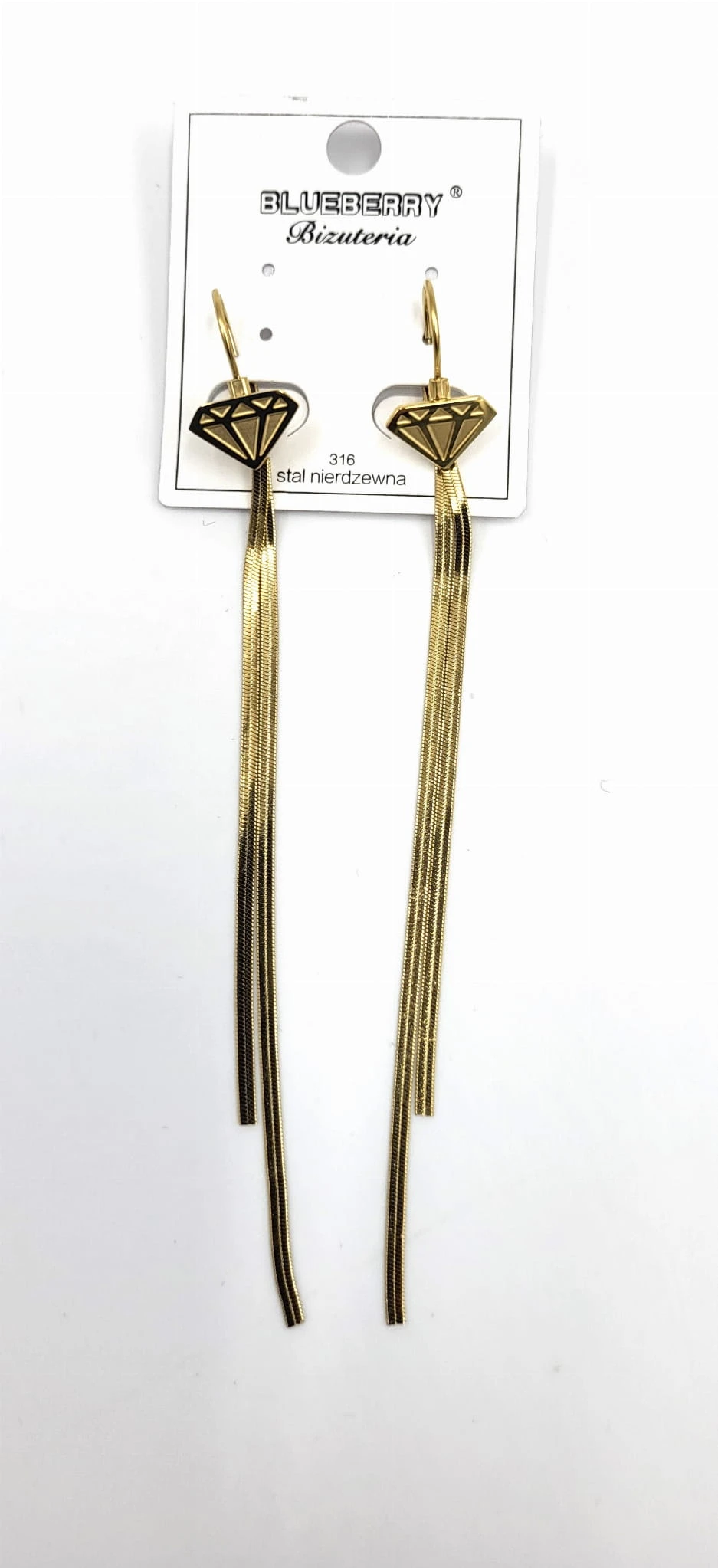 Kolczyki diament długi firmy BLUEBERRY wykonane z wysokiej jakości stali nierdzewnej 316L.