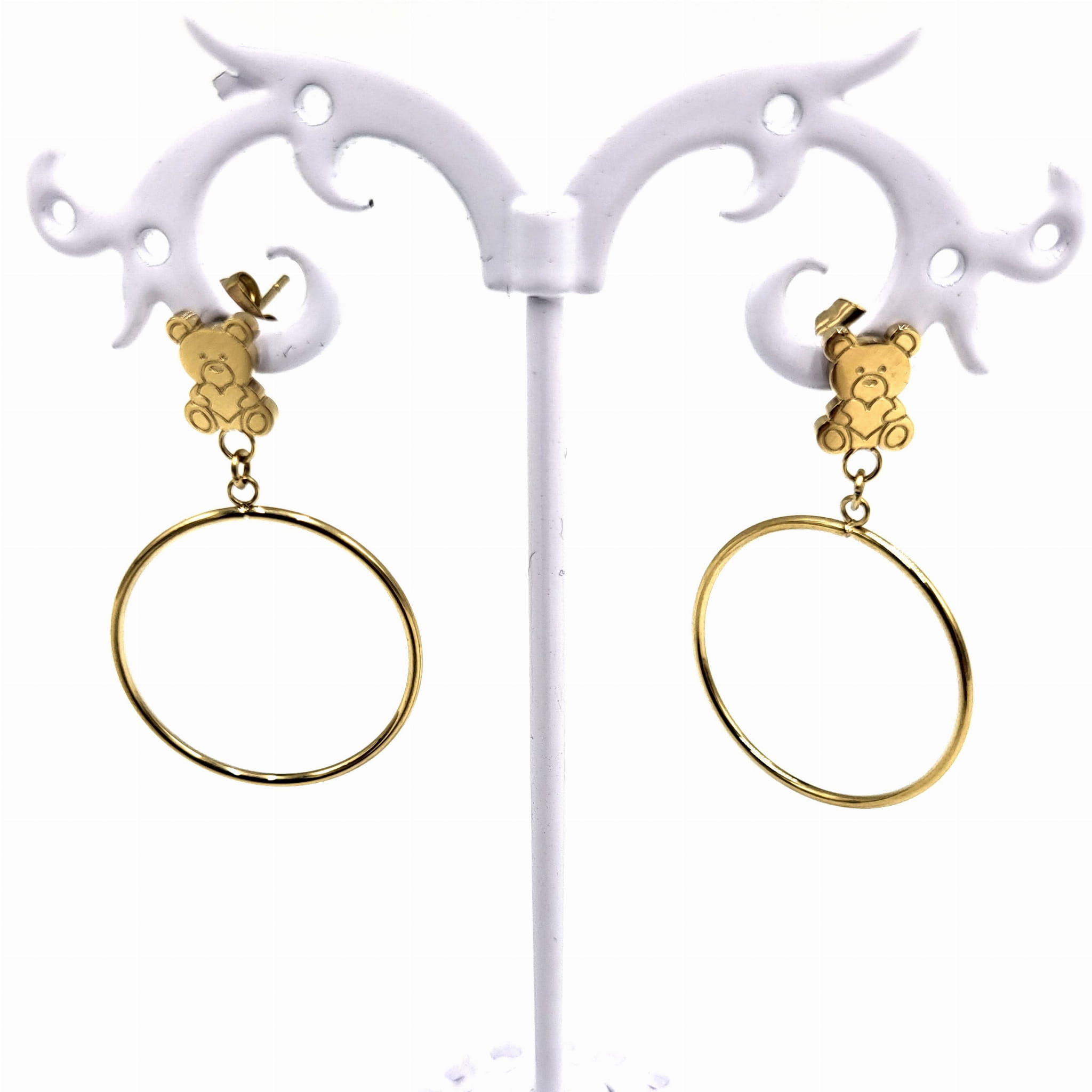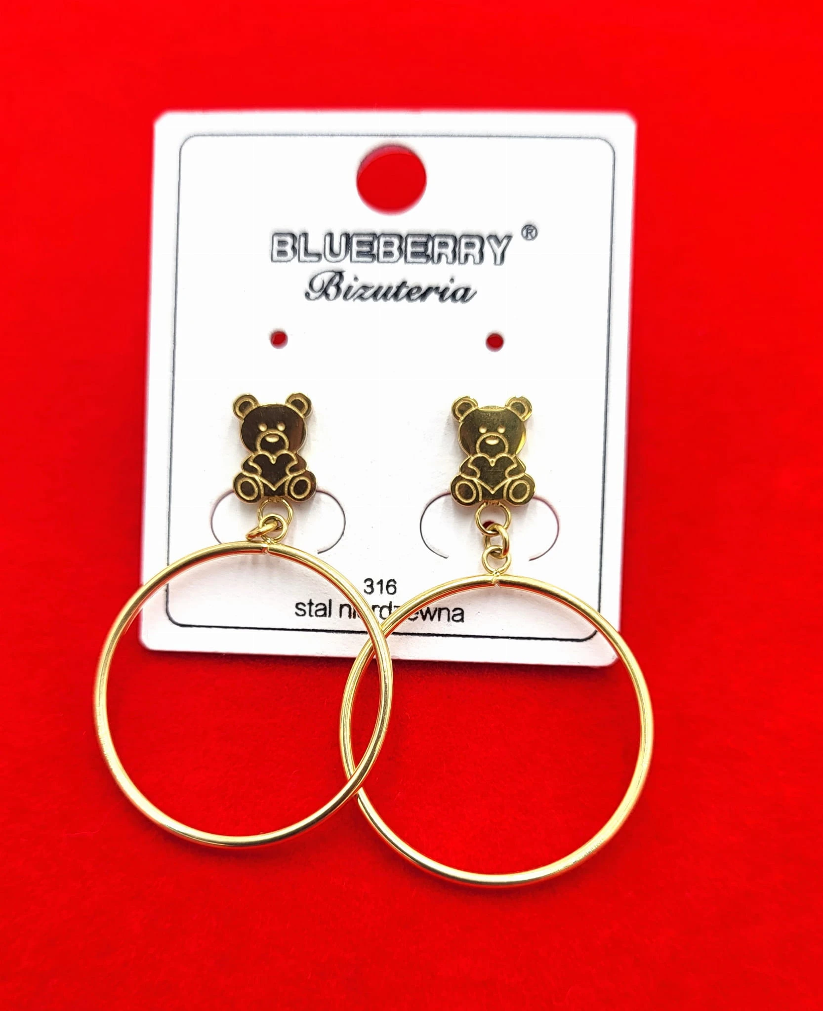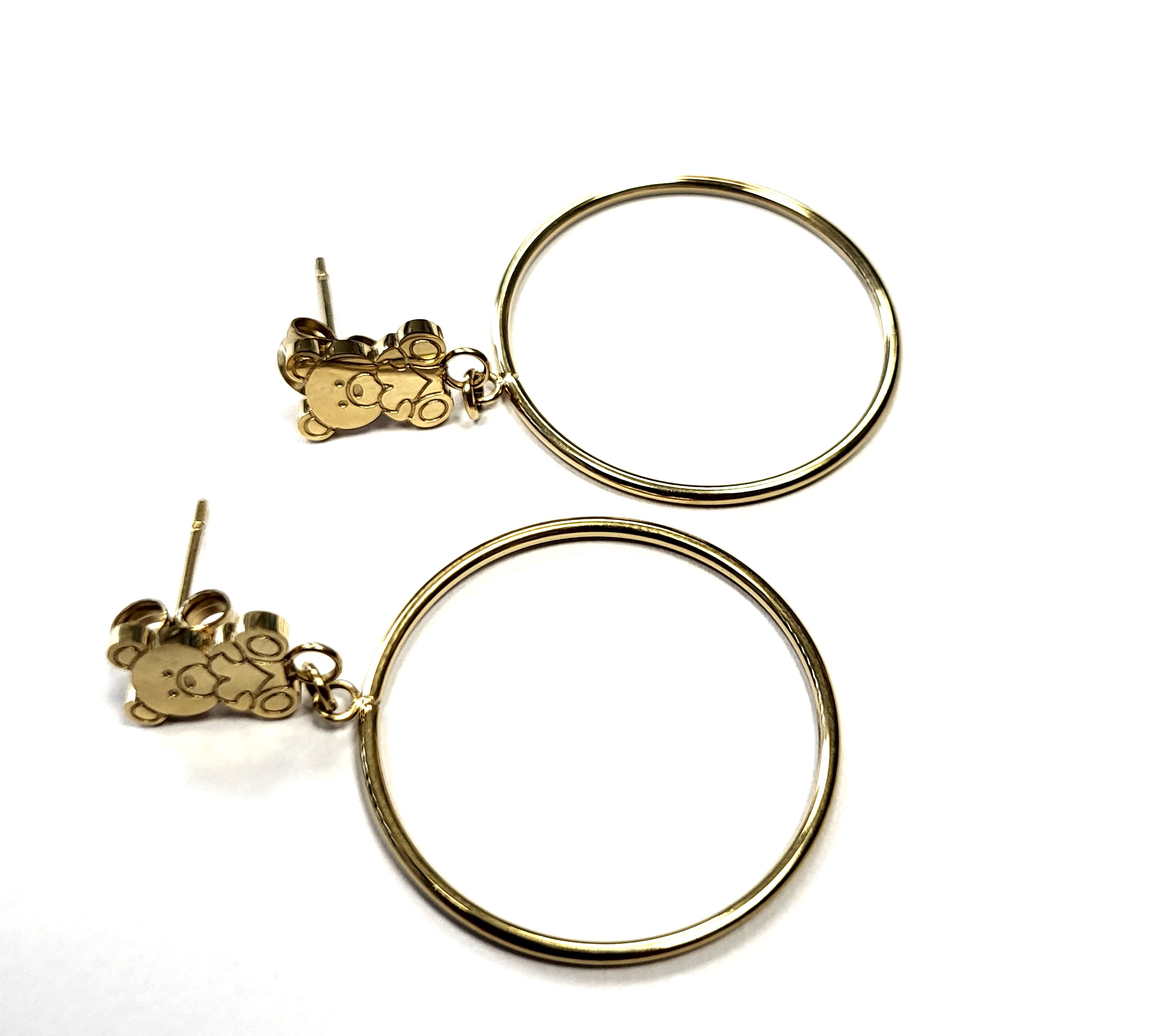 Kolczyki koła z misiem firmy BLUEBERRY wykonane z wysokiej jakości stali nierdzewnej 316L.