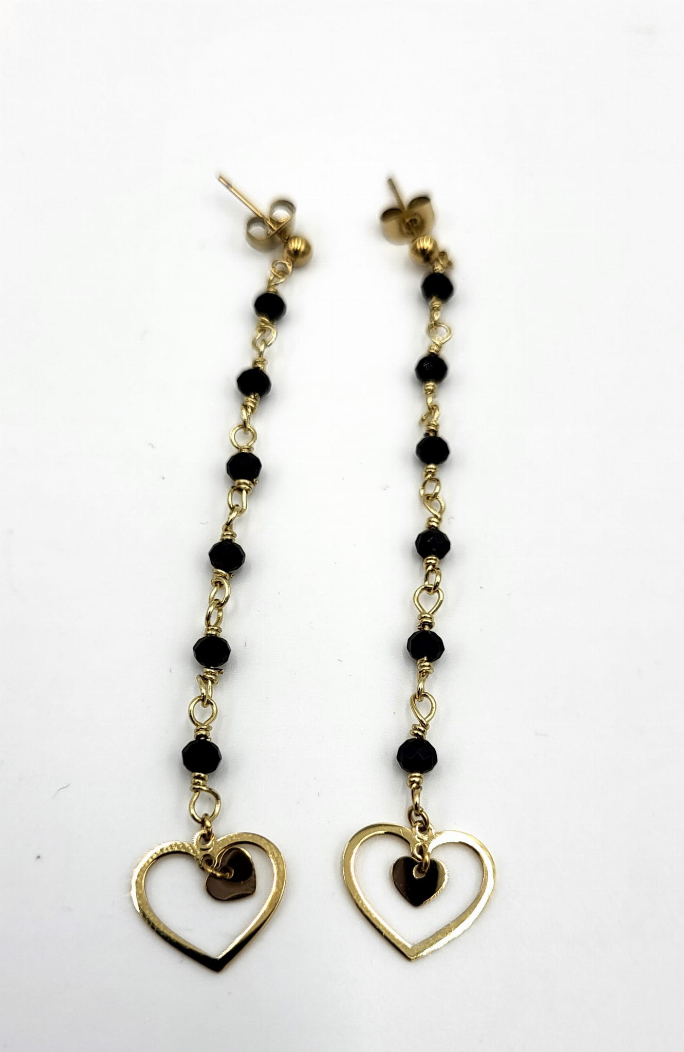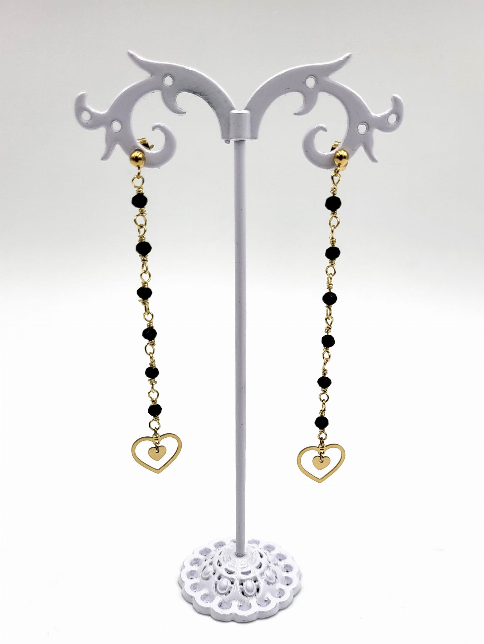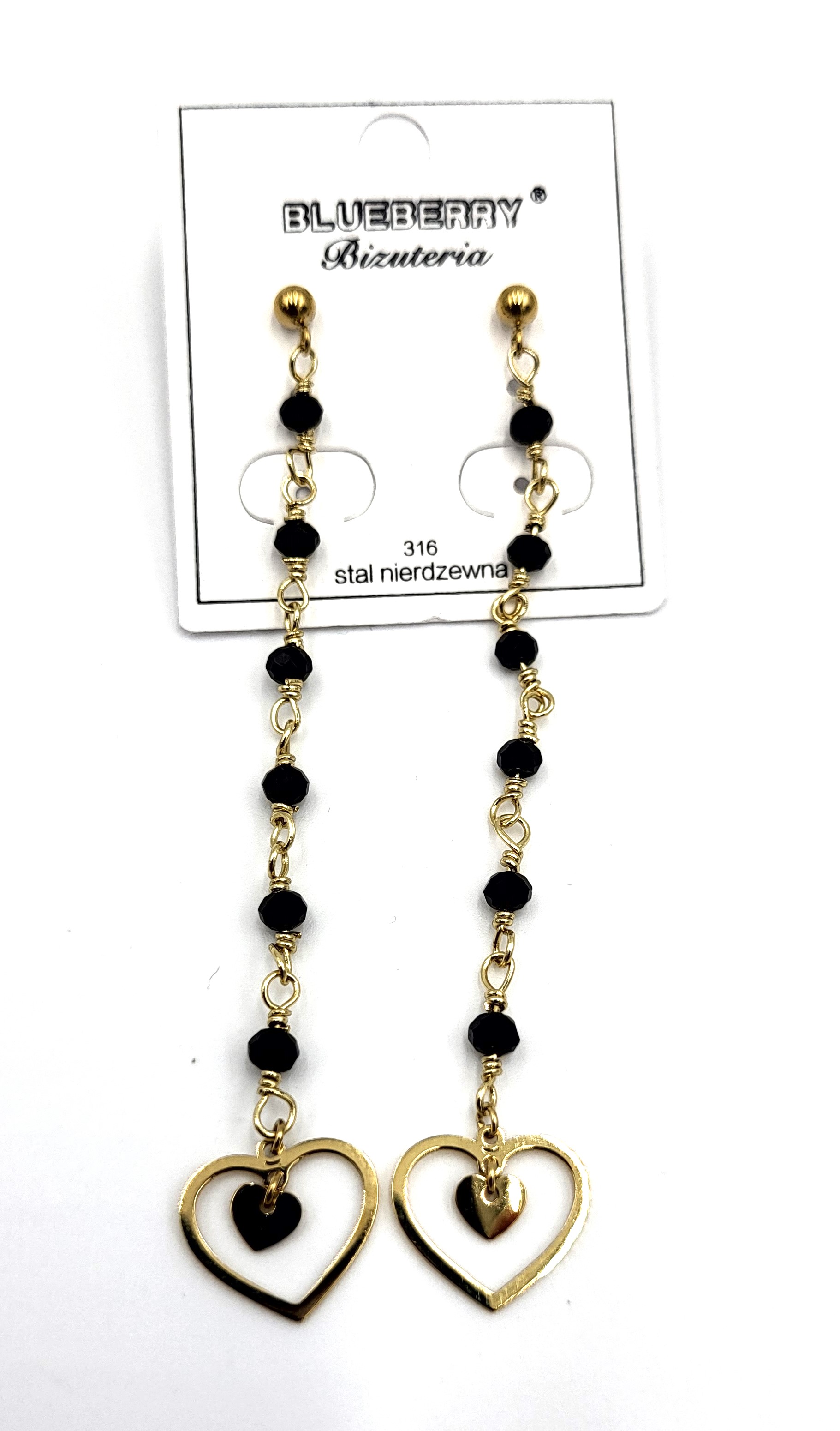 Kolczyki BLUEBERRY serce kryształek złoty-czarny