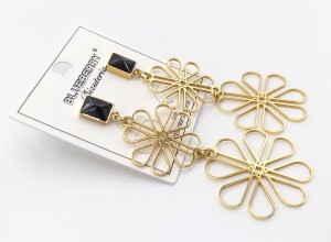 Kolczyki BLUEBERRY wzór kwiatek złoty