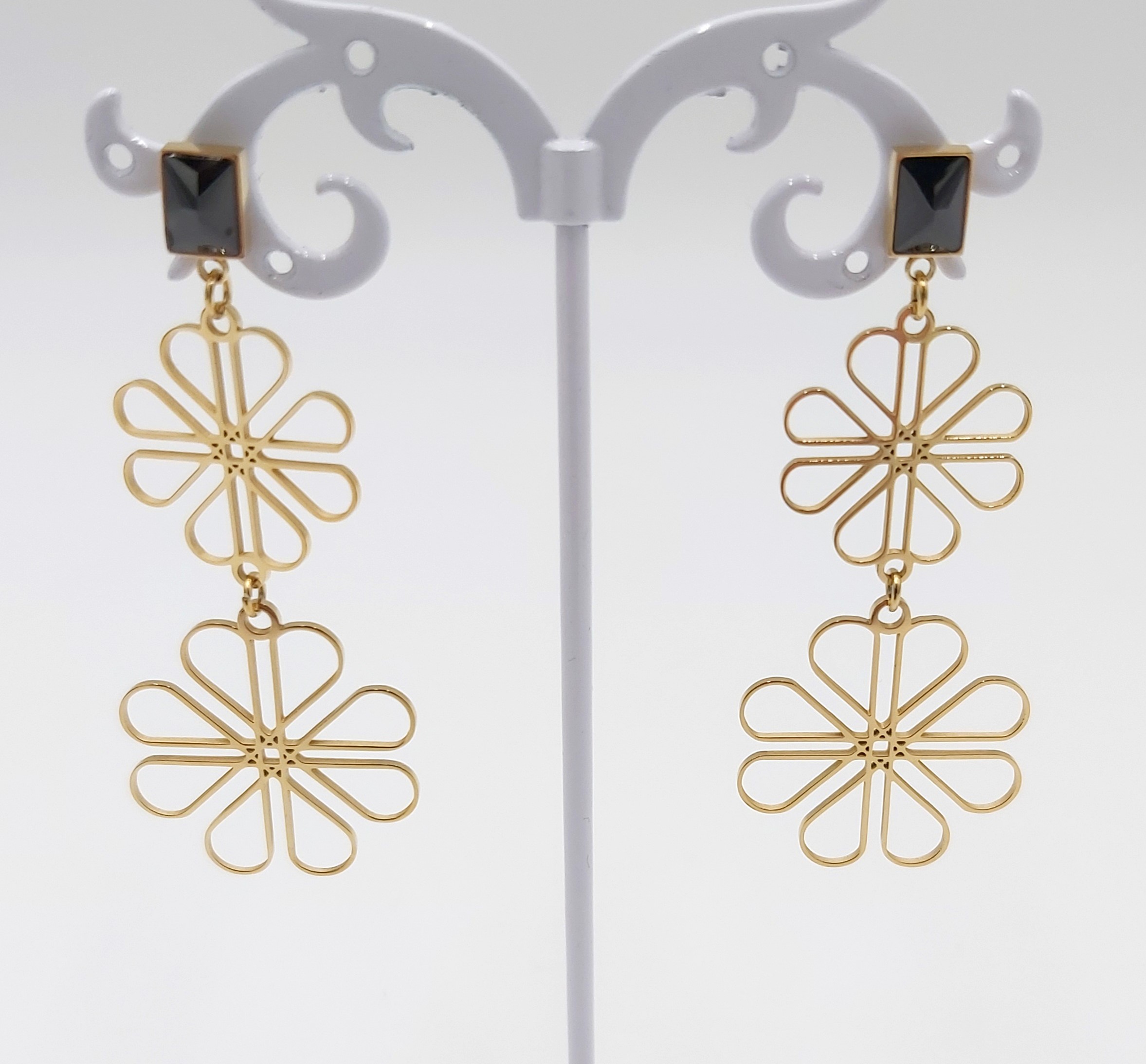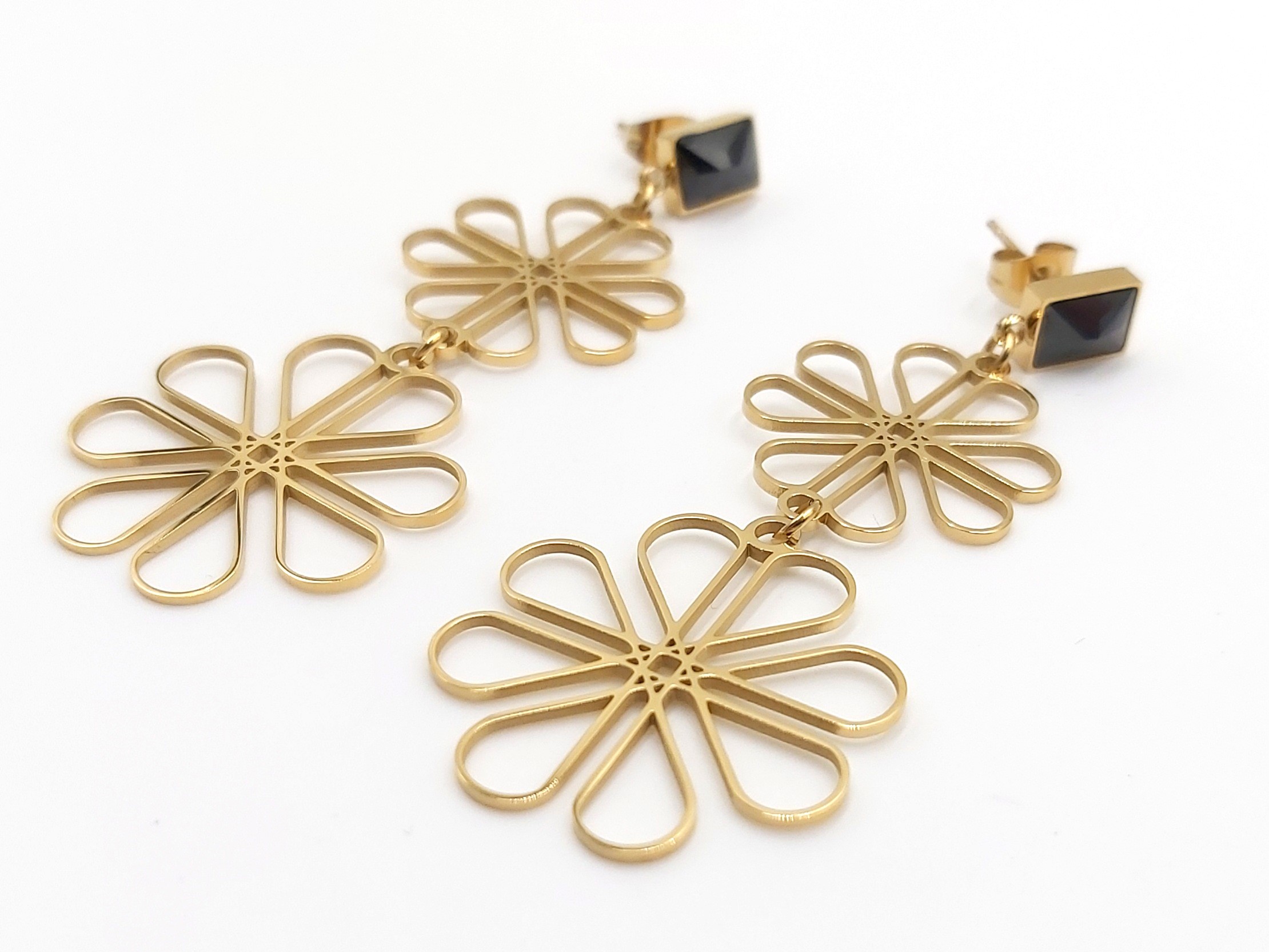 Kolczyki wzór kwiatek firmy BLUEBERRY w kolorze złotym, wykonane z wysokiej jakości stali nierdzewnej 316L.