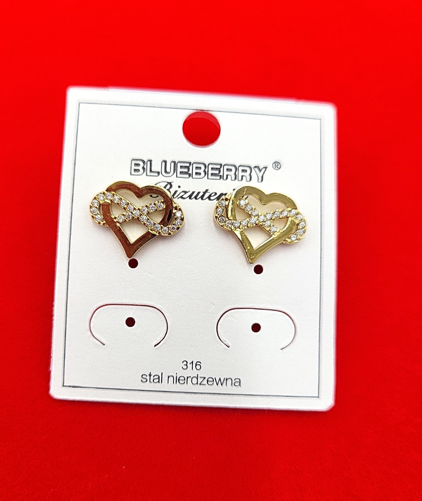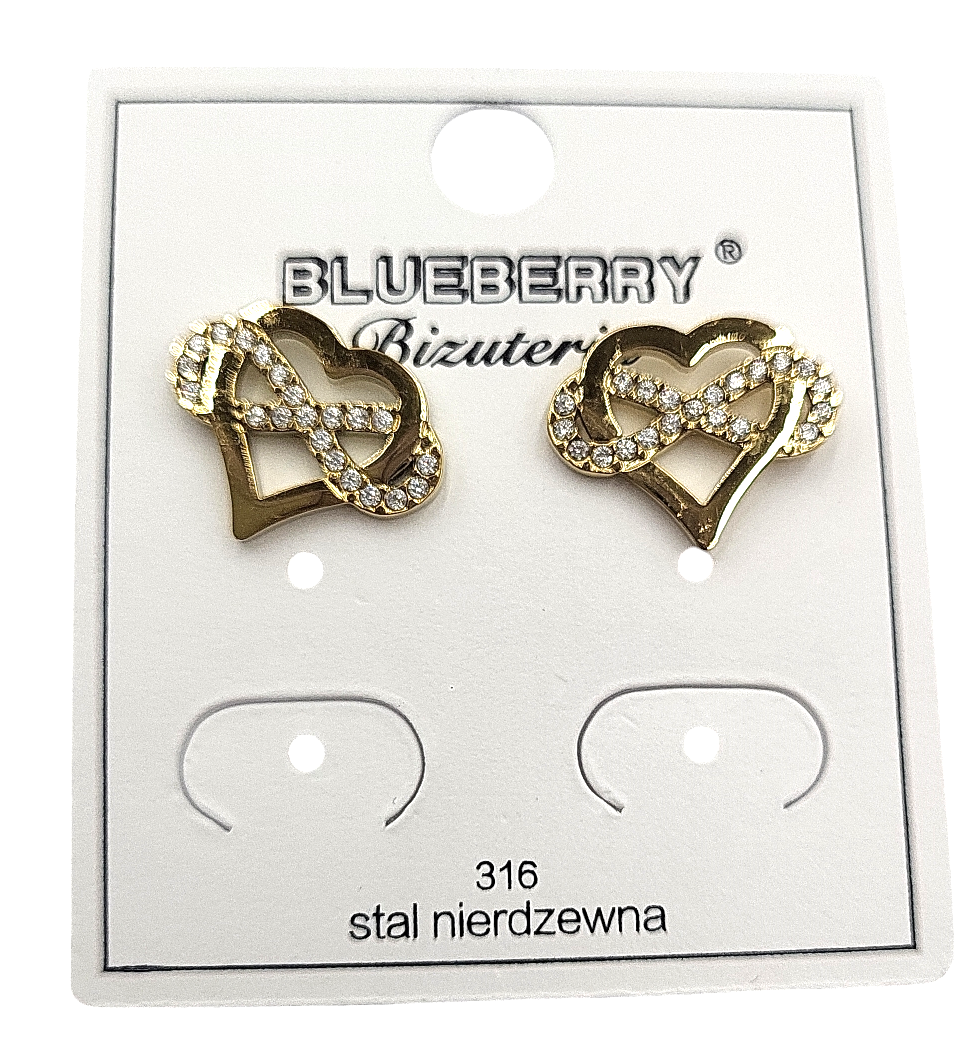 Kolczyki Blueberry serce nieskończoność złoty