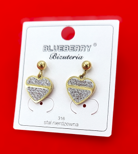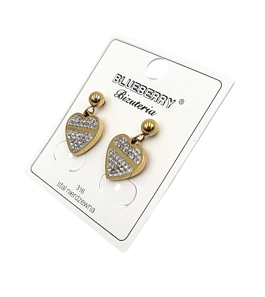 Kolczyki złote serca z cyrkonii firmy Blueberry wykonane z wysokiej jakości stali nierdzewnej 316L.