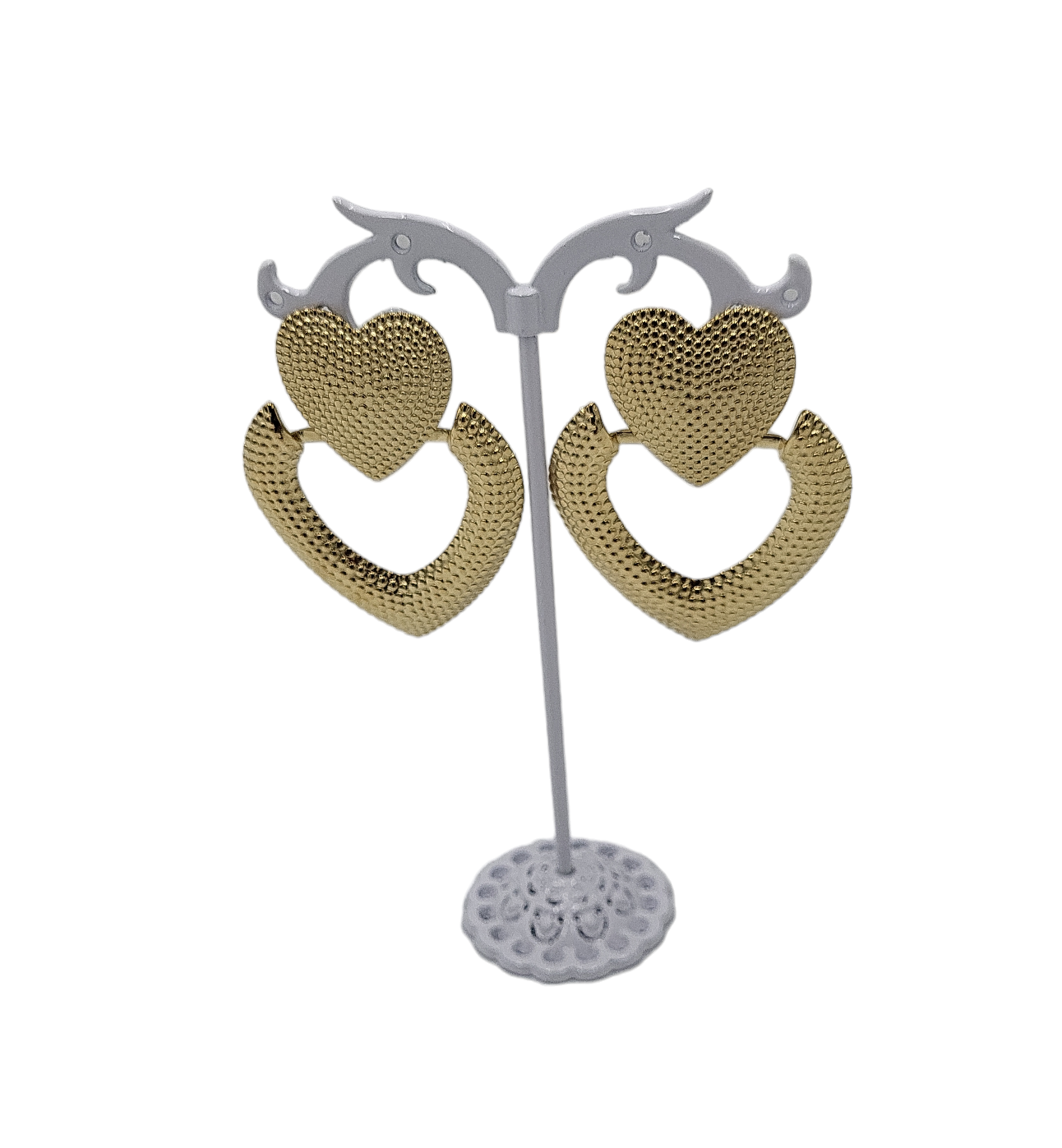 Kolczyki dwa serca wzór złote stal nierdzewna