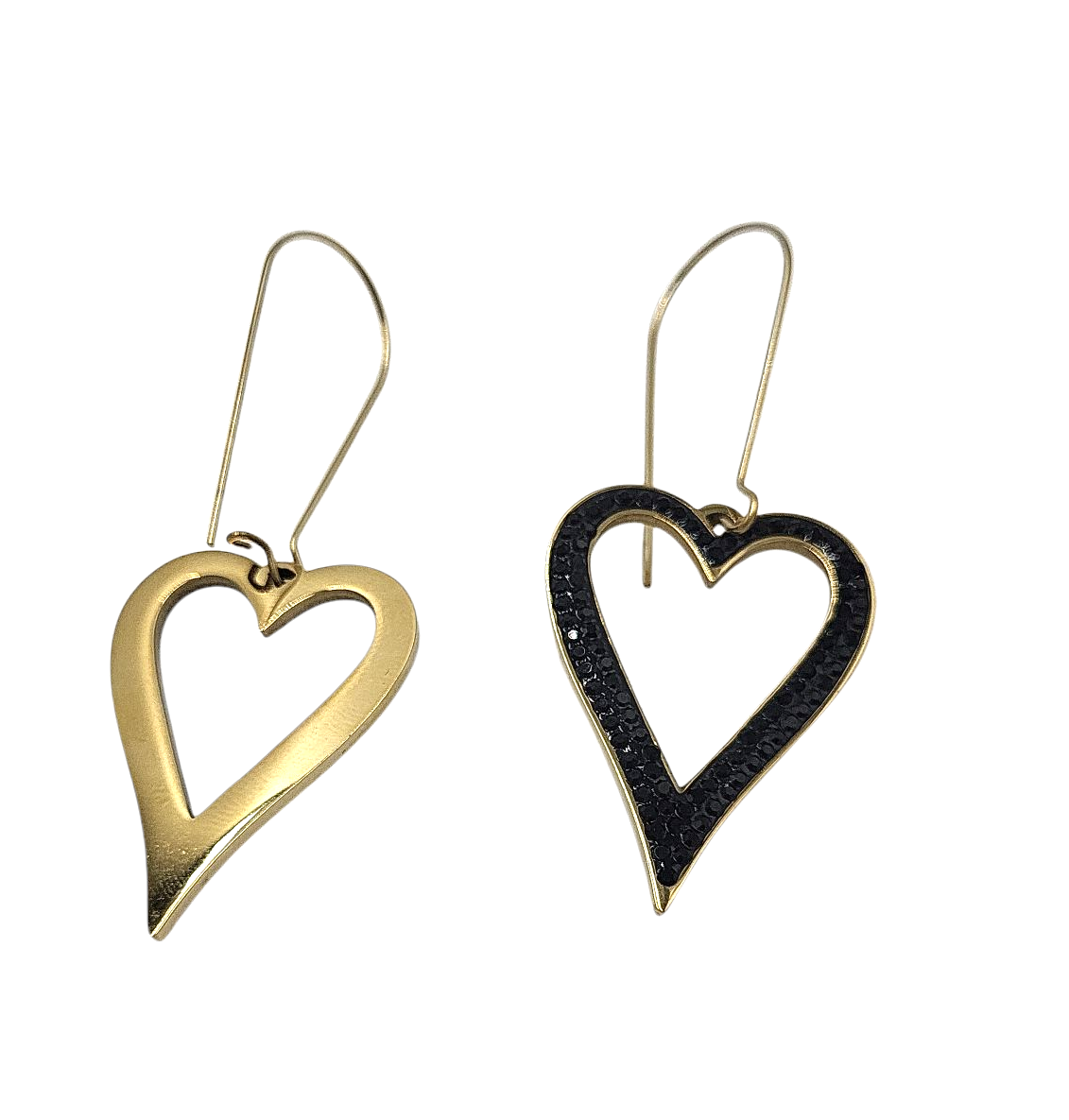 Eleganckie kolczyki w kształcie serca wykonane z wysokiej jakości stali nierdzewnej. Ich unikalna złota i czarna kolorystyka doskonale komponuje się z różnorodnymi stylizacjami, dodając im wyjątkowego charakteru. Dzięki zastosowaniu stali nierdzewnej, biżuteria jest nie tylko piękna, ale także trwała i odporna na działanie czynników zewnętrznych. Idealne na każdą okazję – zarówno na co dzień, jak i na specjalne wyjścia. Te subtelne, a zarazem efektowne kolczyki stanowią doskonały wybór dla każdego, kto ceni sobie estetykę oraz wysoką jakość wykonania.