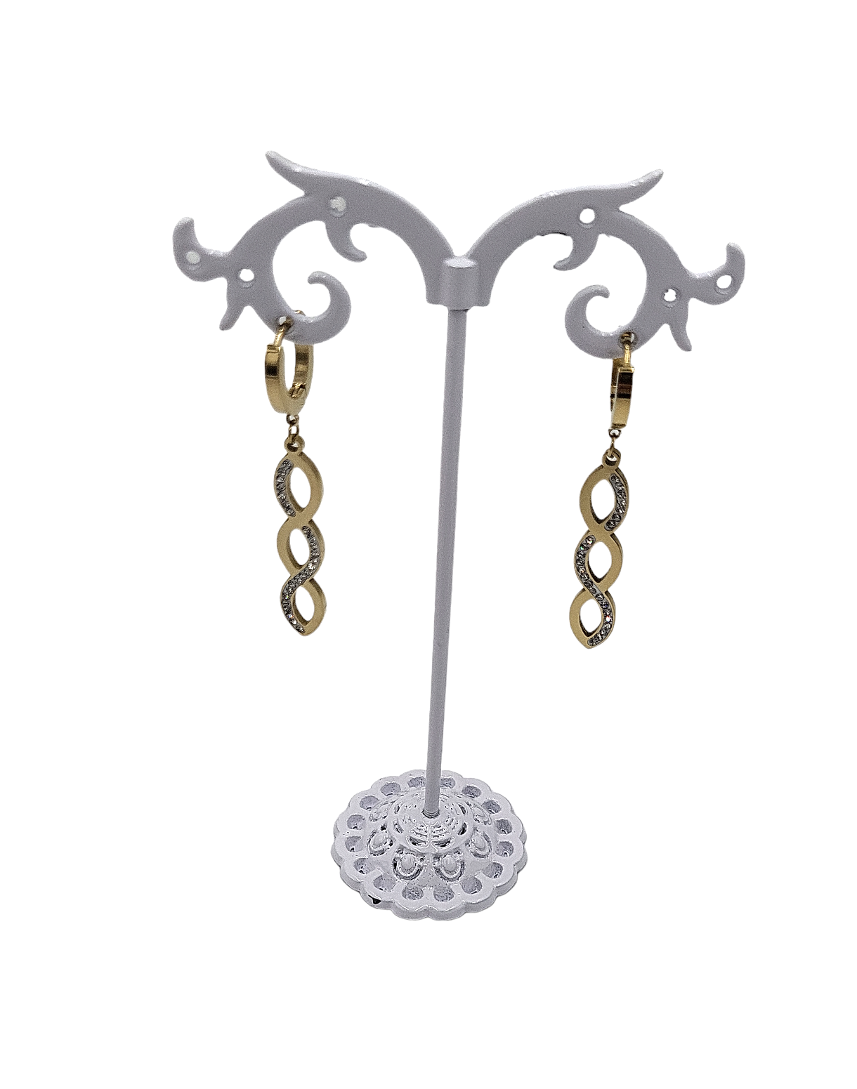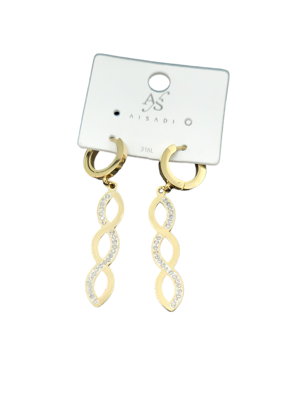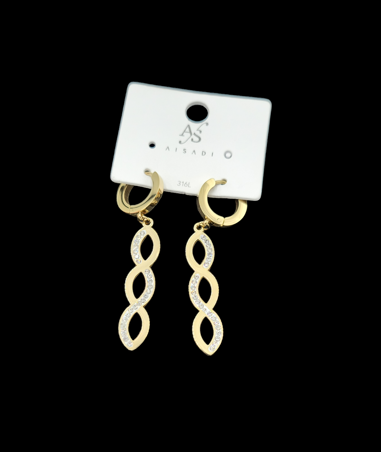 Kolczyki wiszące wzór nieskończoność z cyrkoniami firmy AISADAI wykonane z wysokiej jakości stali nierdzewnej 316L.