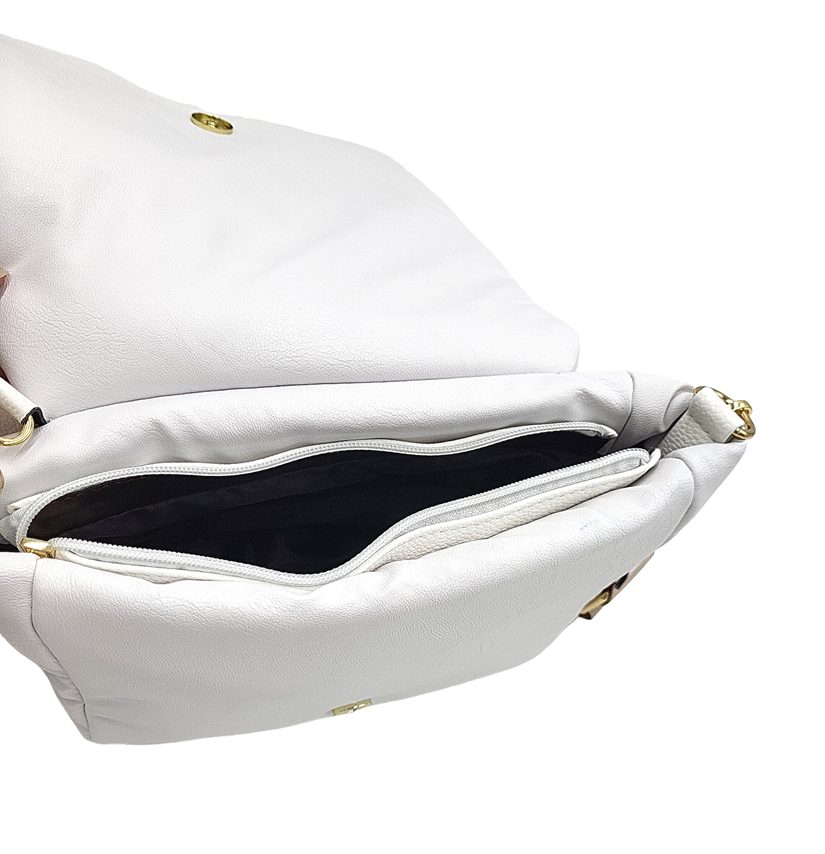 Elegancka listonoszka LAURA BIAGGI w kolorze białym to doskonały dodatek do codziennej stylizacji. Pikowane wykończenie dodaje jej wyjątkowego charakteru, a solidne wykonanie gwarantuje trwałość i wygodę użytkowania. Zaprojektowana z myślą o praktyczności, idealnie pomieści niezbędne rzeczy, zachowując przy tym nienaganny wygląd. Doskonała propozycja dla kobiet ceniących klasykę w modzie.