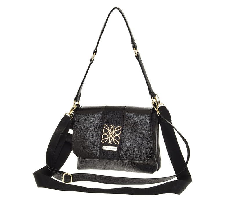 Złote okucia i ozdoba na klapce dodają jej ekskluzywnego charakteru, a trzy różne paski zapewniają wygodę noszenia: