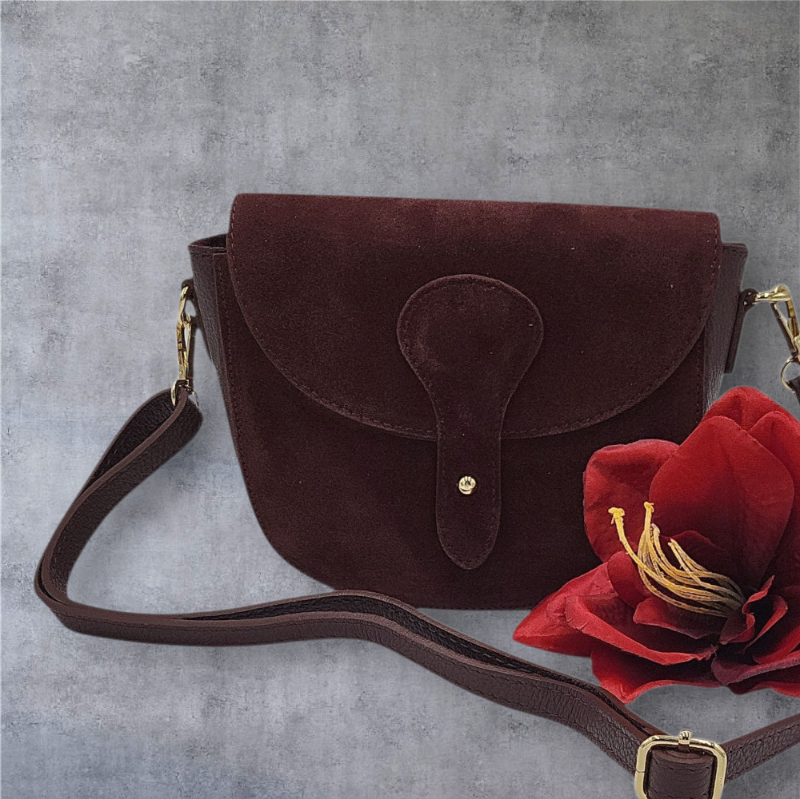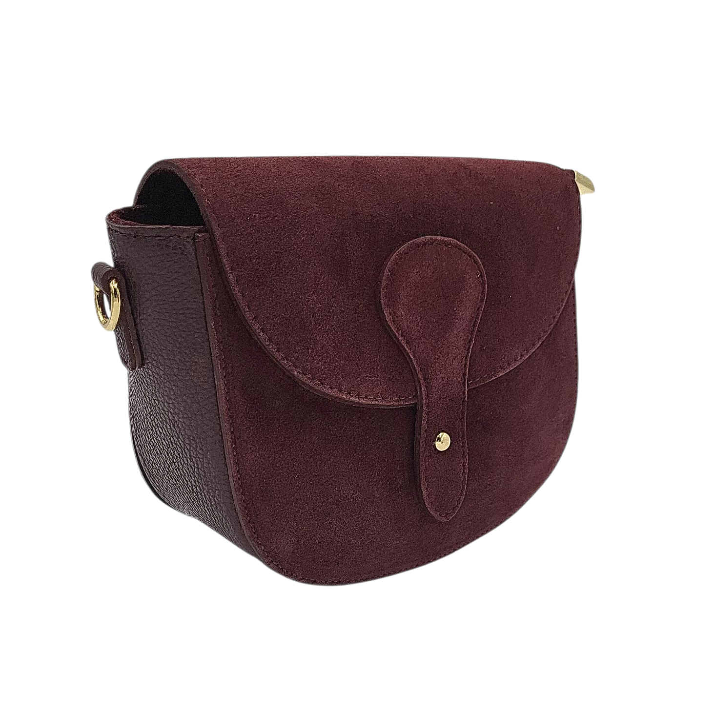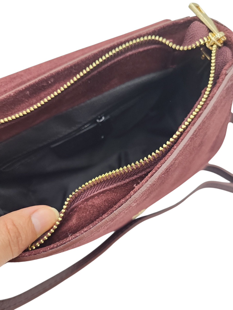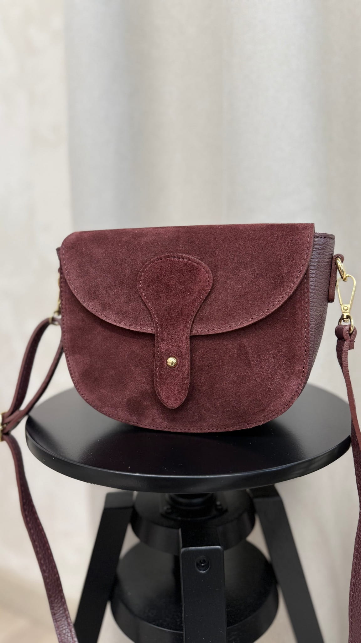 Wnętrze torby jest starannie wykończone, oferując miejsce na wszystkie niezbędne drobiazgi, takie jak portfel, telefon czy klucze. Regulowany pasek sprawia, że możesz nosić ją na różne sposoby, dostosowując do własnych preferencji i stylizacji. Dodatkowo, bordowy kolor zamszu podkreśla elegancję i sprawia, że torba jest idealnym uzupełnieniem każdej stylizacji.