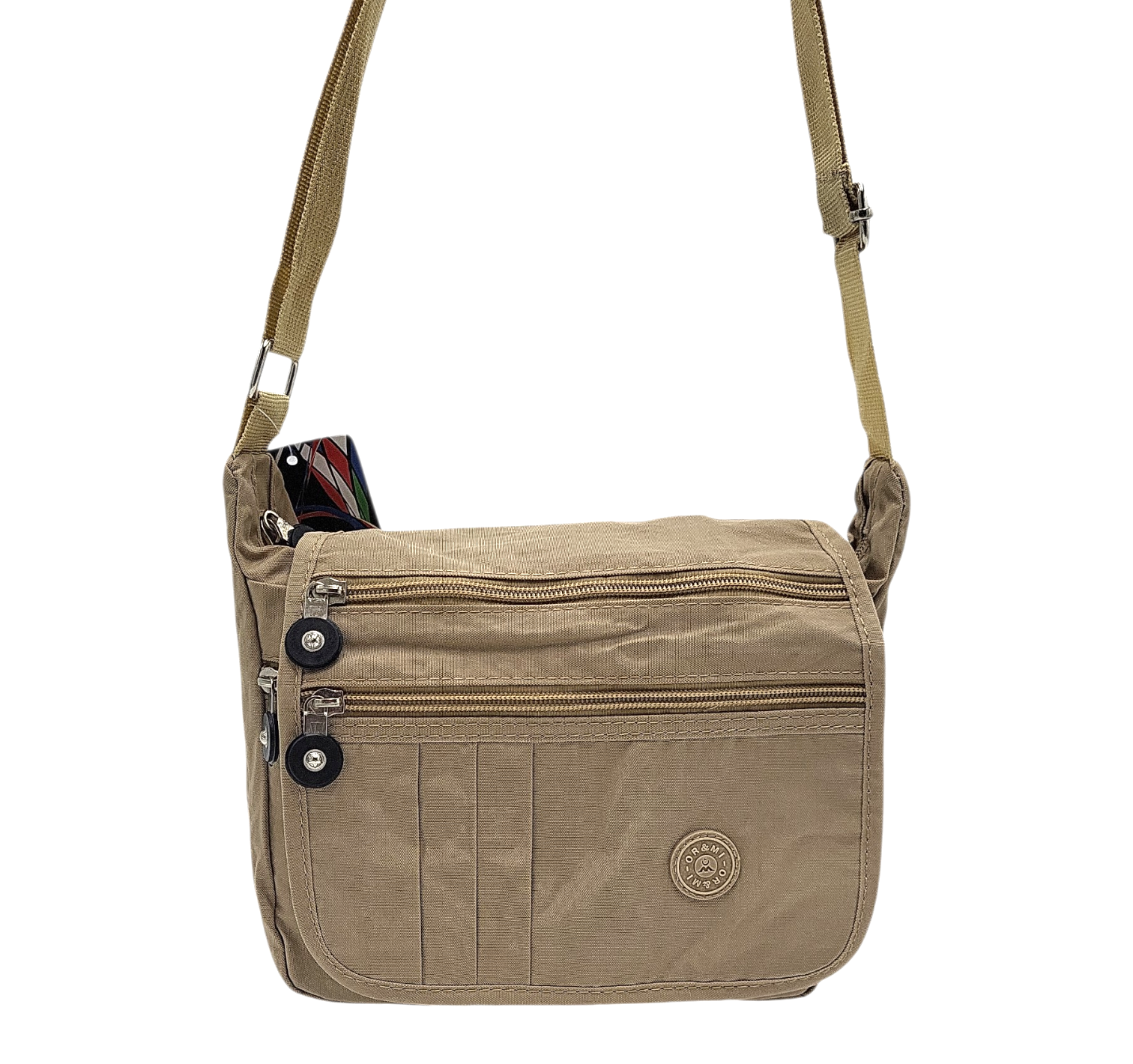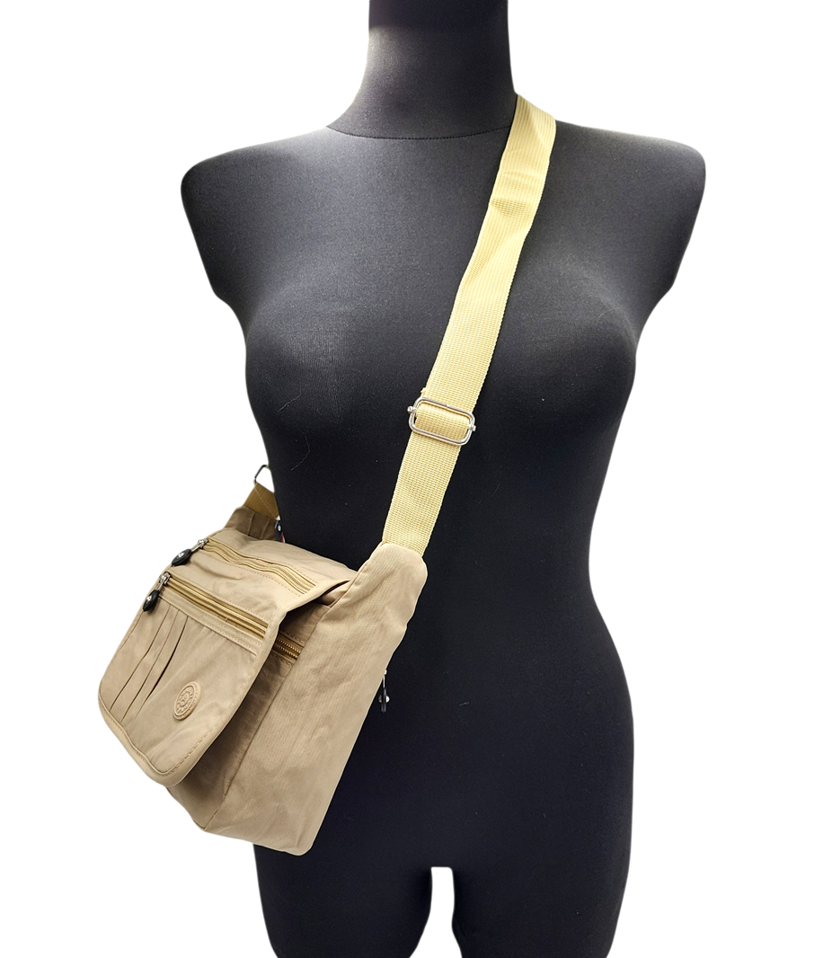 Mała sportowa listonoszka z kieszonkami beżowa