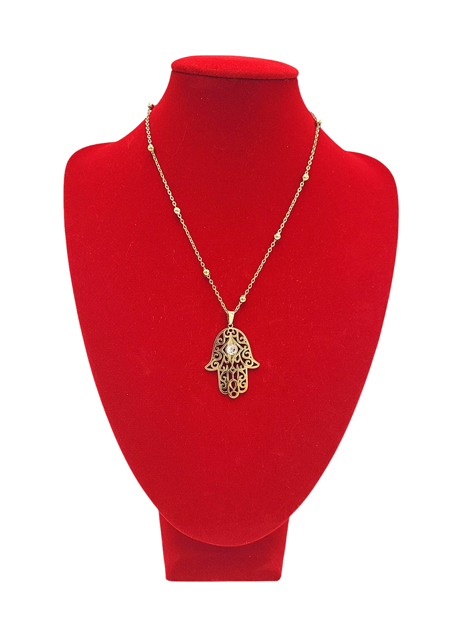 Naszyjnik ażurowa ręka fatimy złoty stal nierdzewna