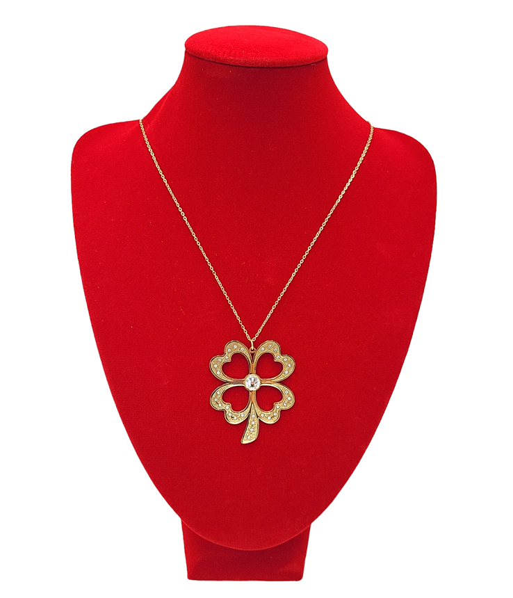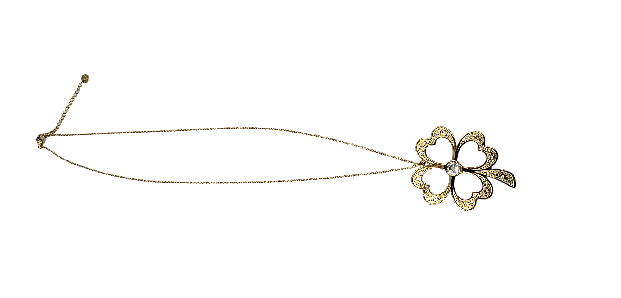 Łańcuszek z przywieszką w kształcie czterolistnej koniczyny zdobionej cyrkoniami w kolorze złotym firmy AISADAI.