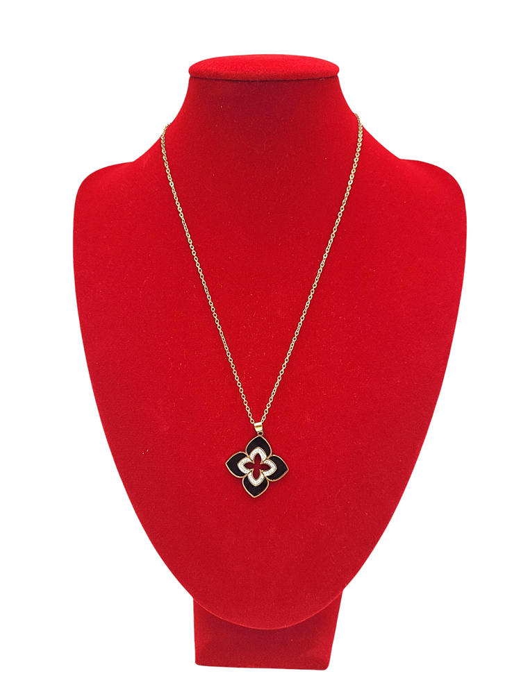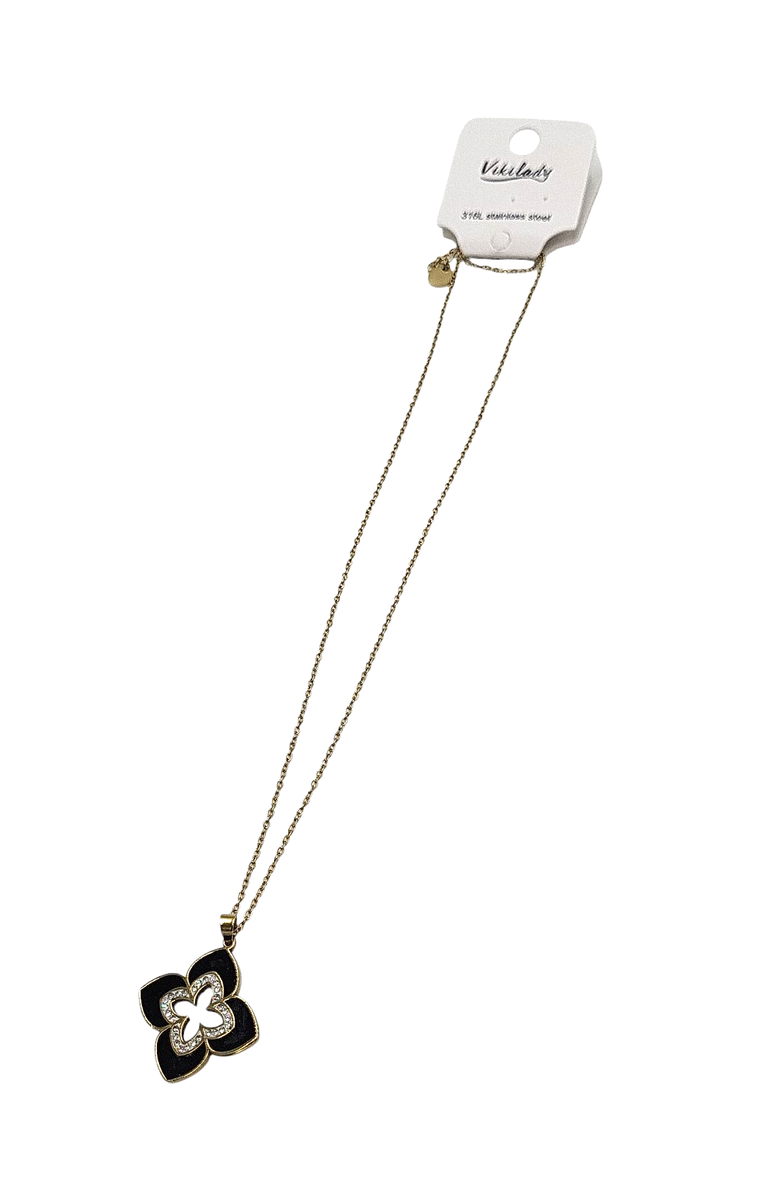 Łańcuszek z przywieszką w kształcie kwiatka zdobionej cyrkoniami w kolorze złotym i czarnym firmy VIKILADY.