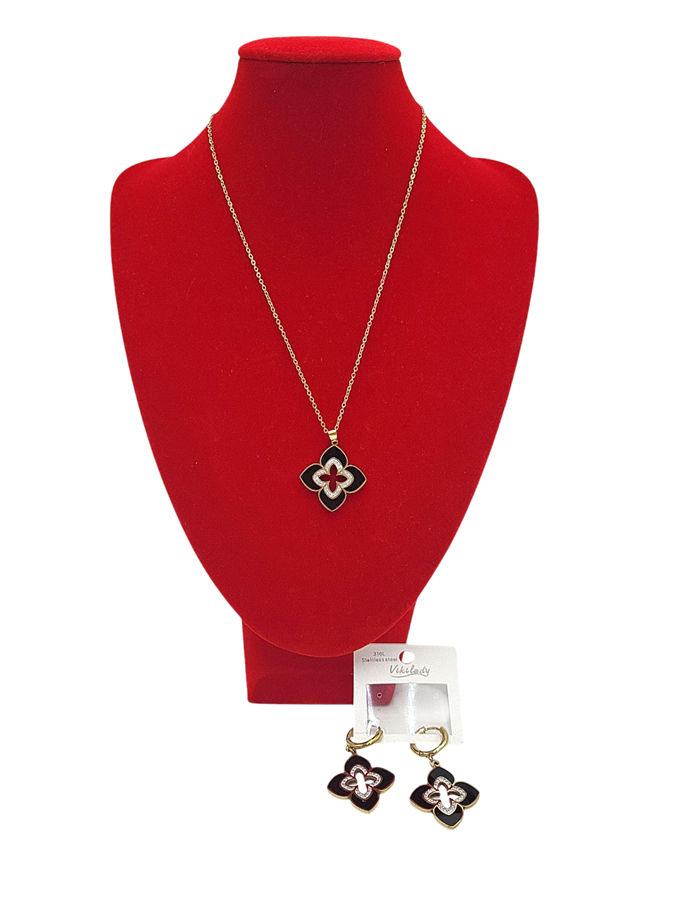 Naszyjnik firmy VIKILADY to elegancki dodatek, który doda wyjątkowego uroku każdej stylizacji. Wykonany z wysokiej jakości stali nierdzewnej, charakteryzuje się odpornością na zarysowania i zniekształcenia, co gwarantuje długotrwałe użytkowanie. Złoty i czarny kolor nadaje mu nowoczesny i szykowny wygląd, idealny zarówno na co dzień, jak i na specjalne okazje. Delikatny kwiatek w centralnej części naszyjnika przyciąga wzrok i podkreśla indywidualność jego właściciela. Naszyjnik doskonale sprawdzi się jako prezent dla bliskiej osoby lub jako uzupełnienie własnej biżuteryjnej kolekcji. Idealny dla kobiet ceniących sobie styl, elegancję i unikalne akcesoria.