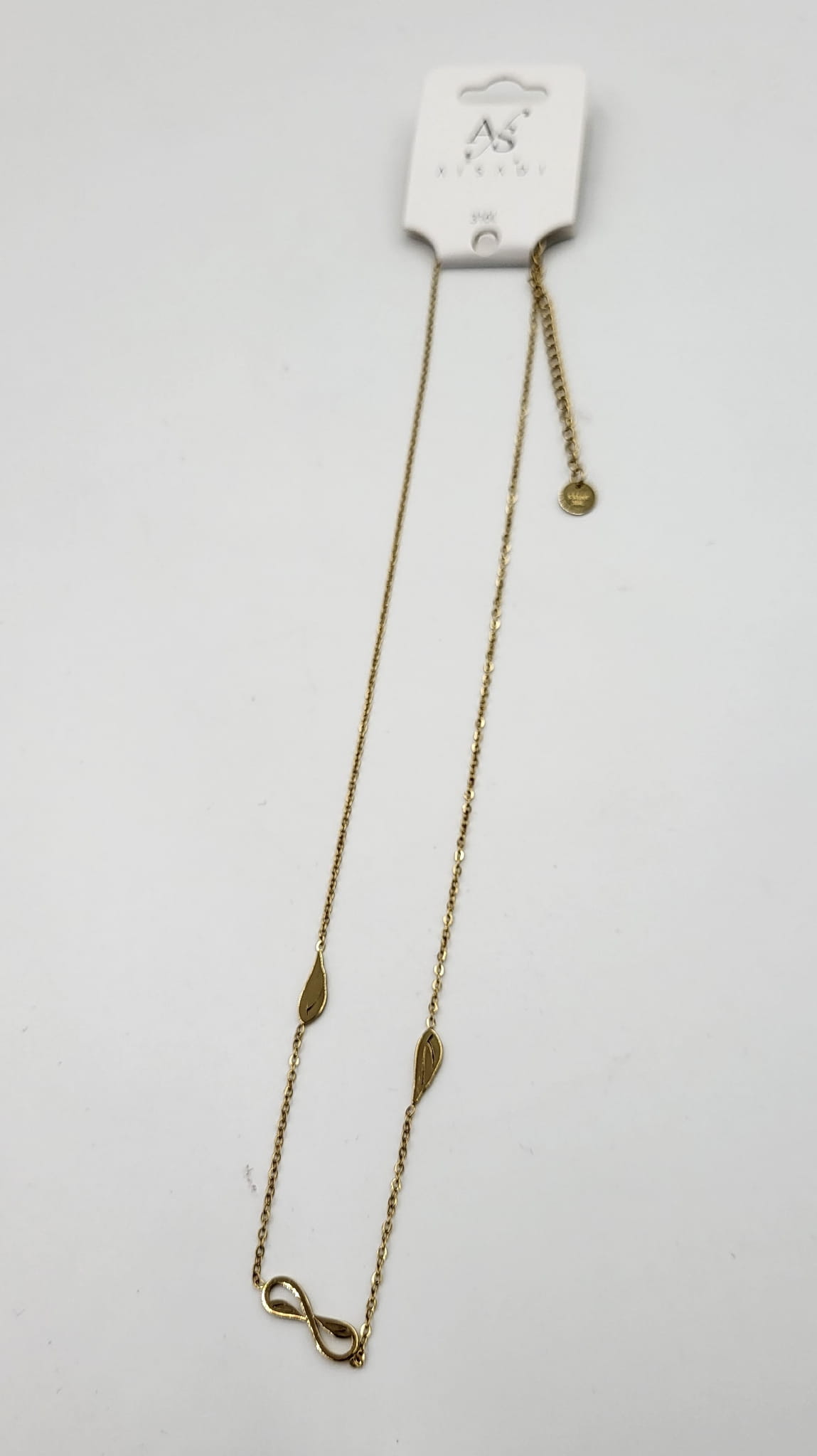 Łańcuszek znak nieskończoności ze skrzydłami w kolorze złotym firmy AISADAI.