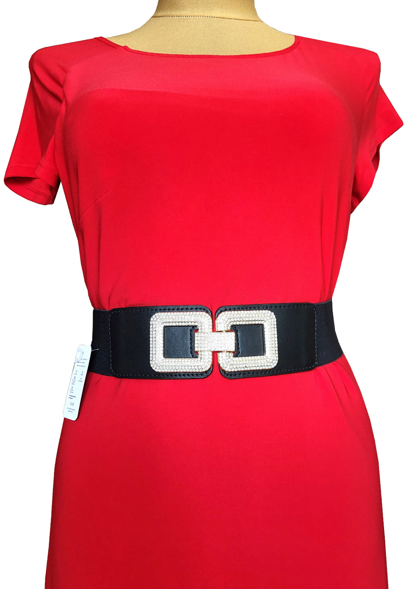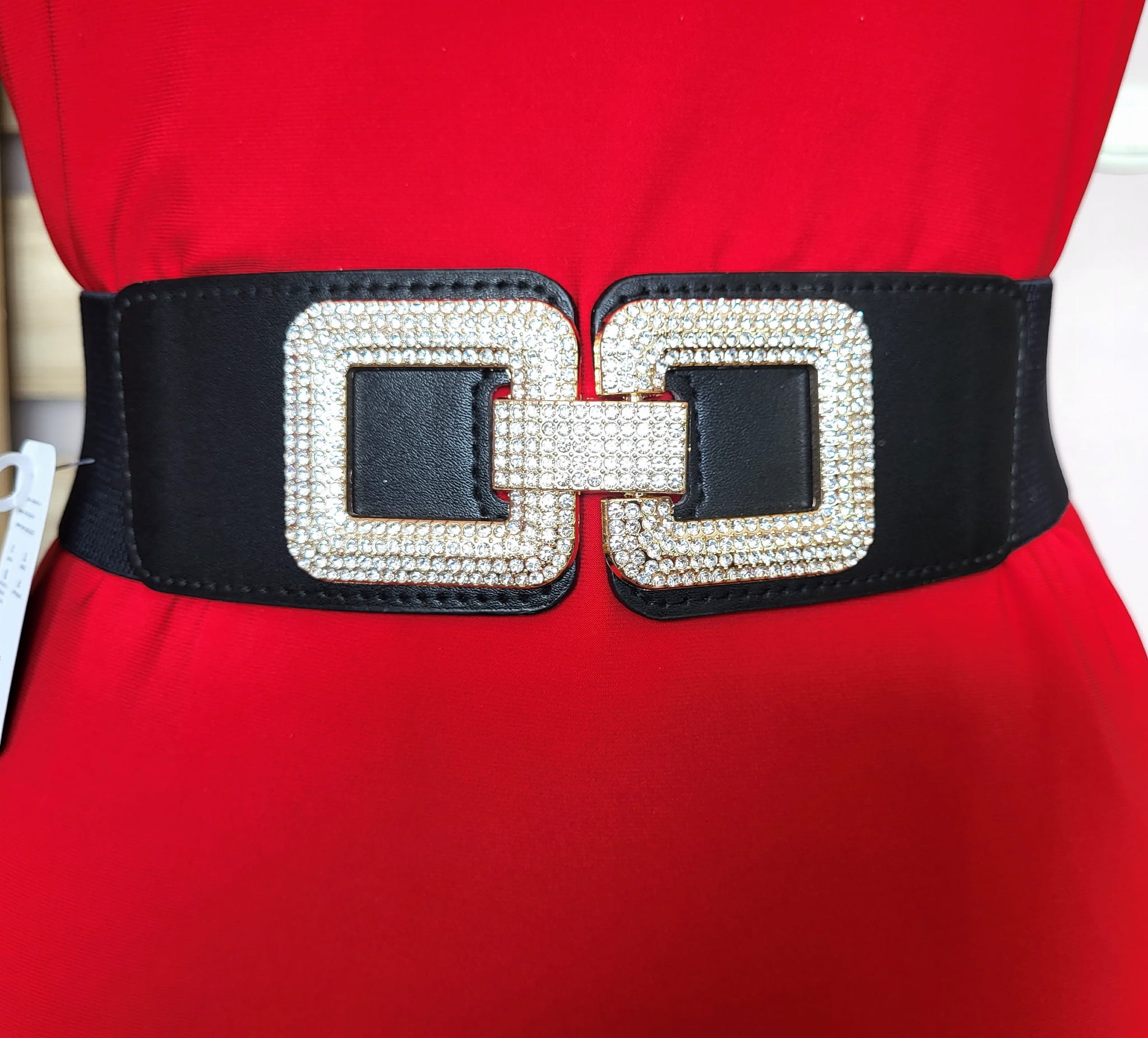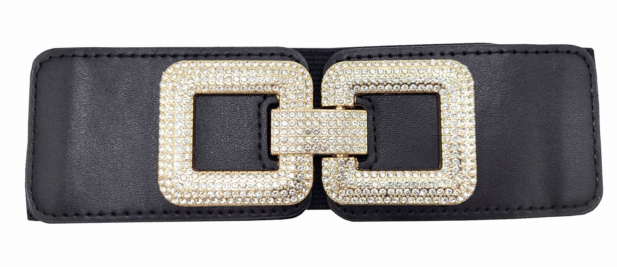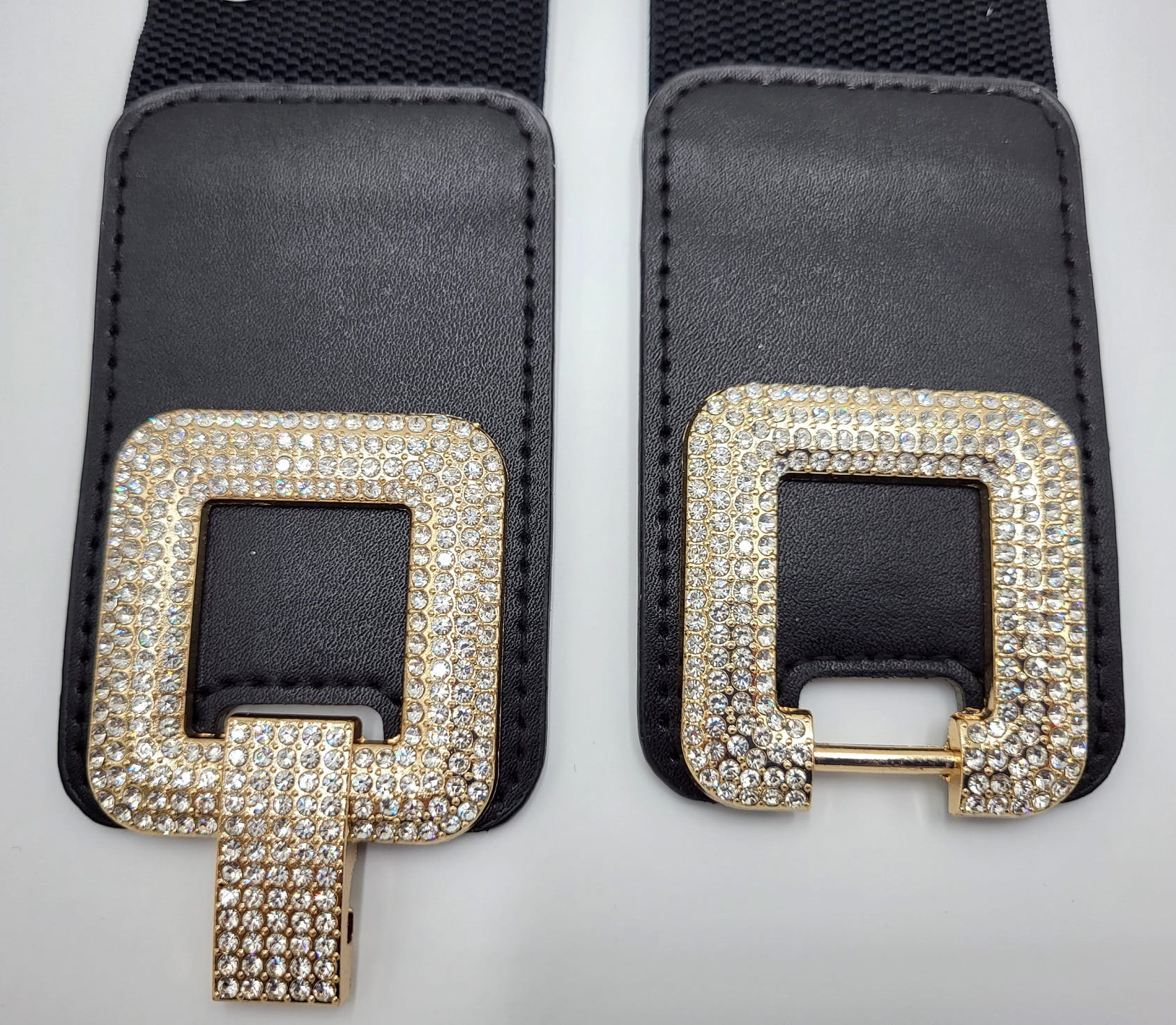 Pasek guma czarny, z przepiękną cyrkoniową klamrą.