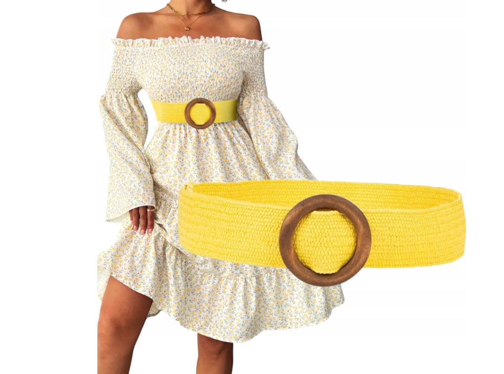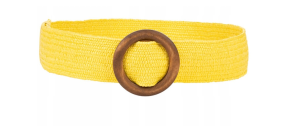 NAJMODNIEJSZY W TYM SEZONIE ELASTYCZNY PLECIONY PASEK BOHO W KOLORZE SOCZYSTEJ CYTRYNY Z CIEMNIEJSZA DREWNIANĄ KLAMRĄ.