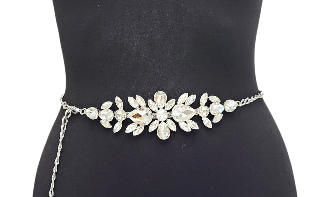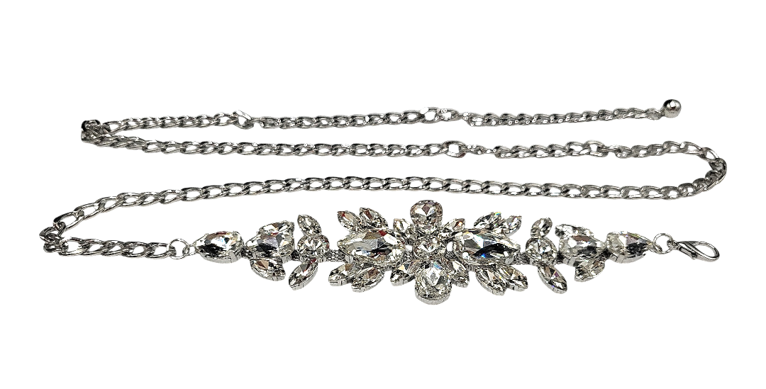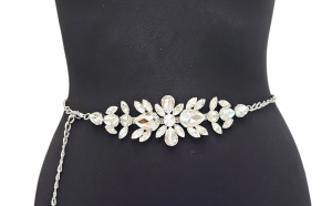 Elegancki, damski pasek ozdobny w formie metalowego łańcuszka z kryształkami — idealne dopełnienie stylizacji wieczorowych oraz codziennych, które wymagają subtelnego, lecz efektownego akcentu. Wykonany z wysokiej jakości stopu metali o starannym wykończeniu w kolorze srebrnym; powierzchnia odporna na matowienie, zapewnia długotrwały połysk. Misternie osadzone kryształki dodają blasku i elegancji, podkreślając sylwetkę i eksponując linię talii.