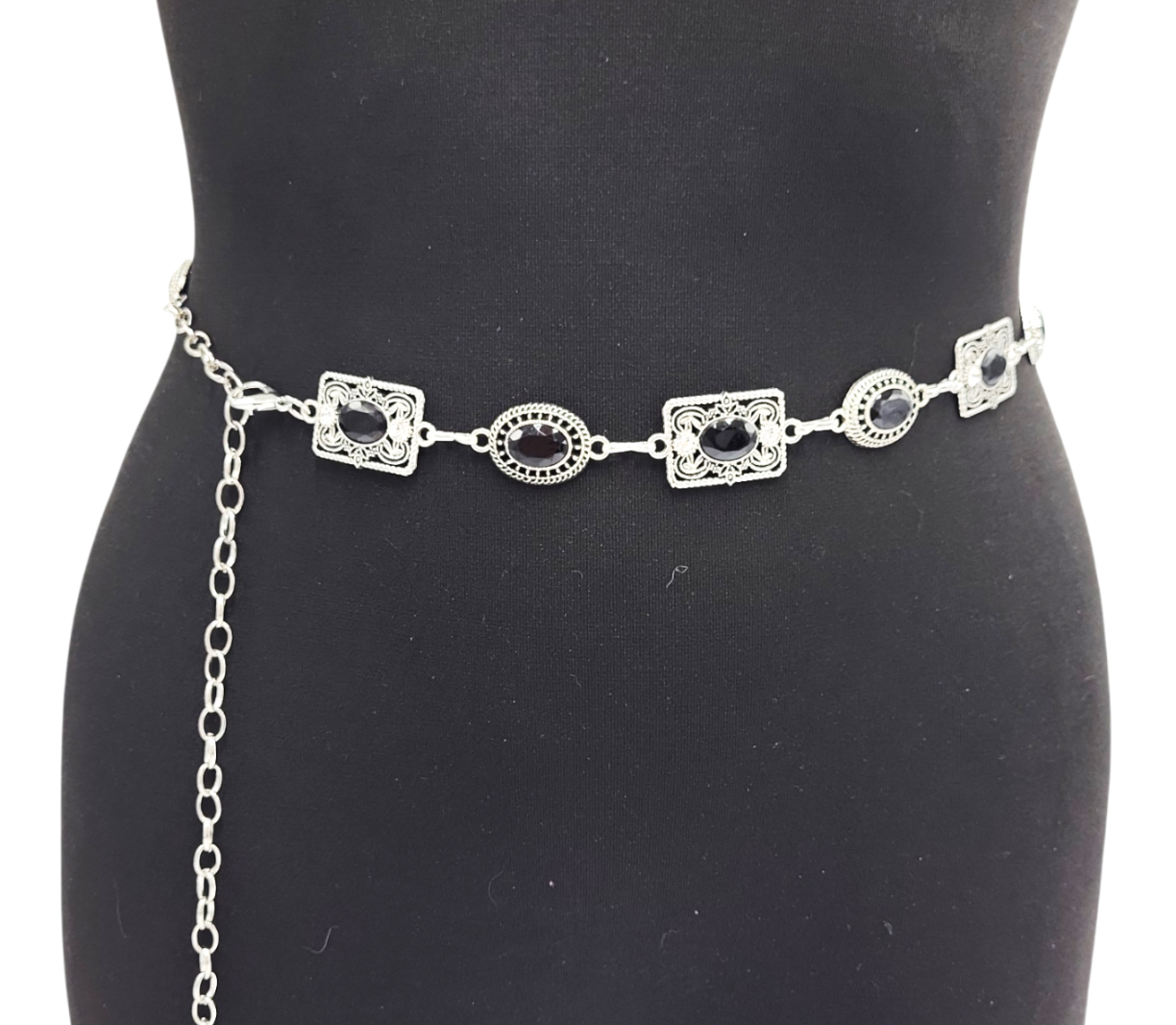 Wykonany z trwałych materiałów, zapewnia długotrwałe użytkowanie przy zachowaniu estetycznego wyglądu. Lekka konstrukcja gwarantuje komfort noszenia, natomiast metalowy połysk dodaje elegancji. Pasek posiada regulowane zapięcie, co umożliwia dopasowanie do różnych obwodów talii i bioder.