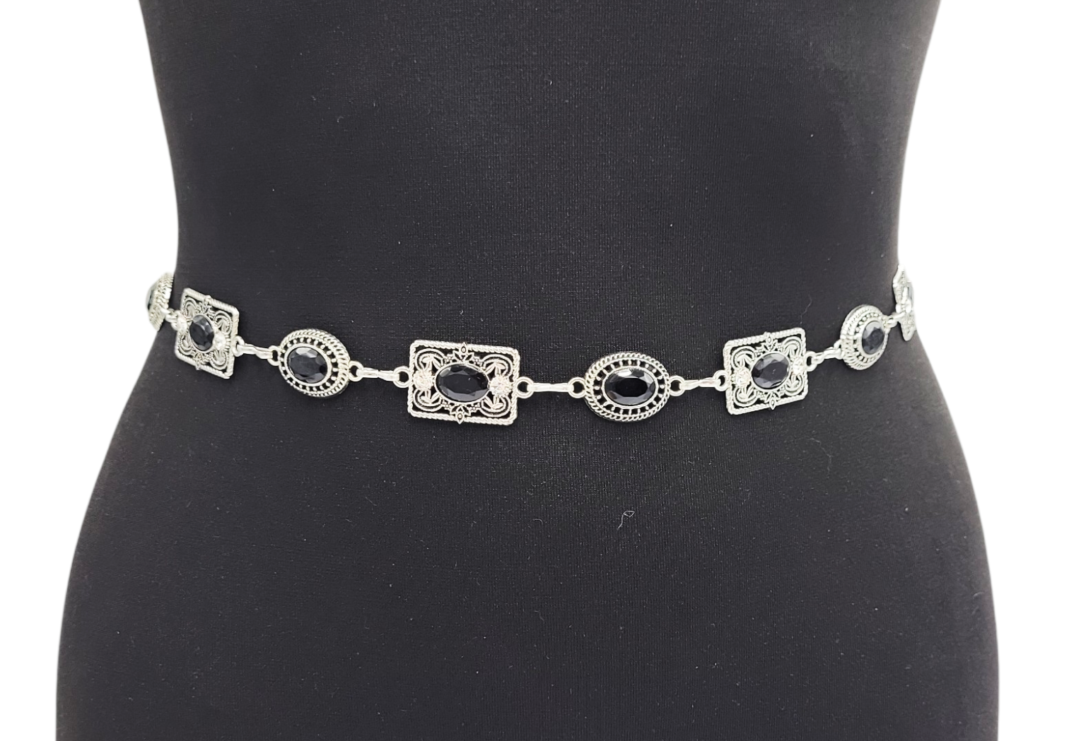 Pasek Ozdobny Damski Metalowy Łańcuszek Srebrny