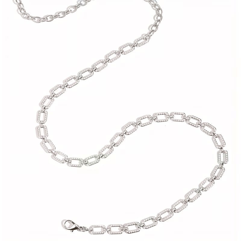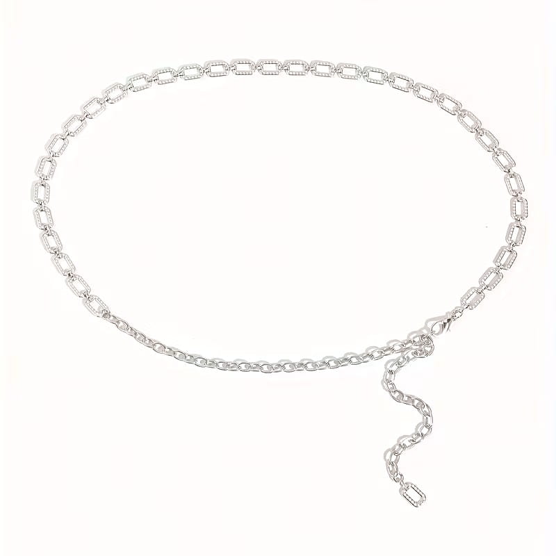 Elegancki damski pasek ozdobny w formie metalowego łańcuszka to doskonały dodatek, który podkreśli stylizację i doda blasku każdej kreacji. Wykonany z wysokiej jakości metalu o srebrnym wykończeniu, pasek posiada delikatne cyrkonie rozmieszczone wzdłuż ogniw, co nadaje mu subtelnej elegancji. Smukła konstrukcja i lekka waga sprawiają, że pasek jest wygodny w noszeniu zarówno do sukienek wieczorowych, jak i do bardziej casualowych zestawów z bluzką czy tuniką.