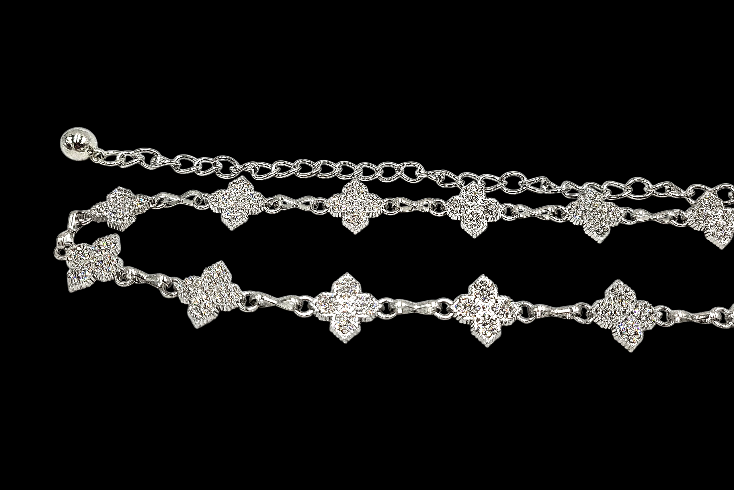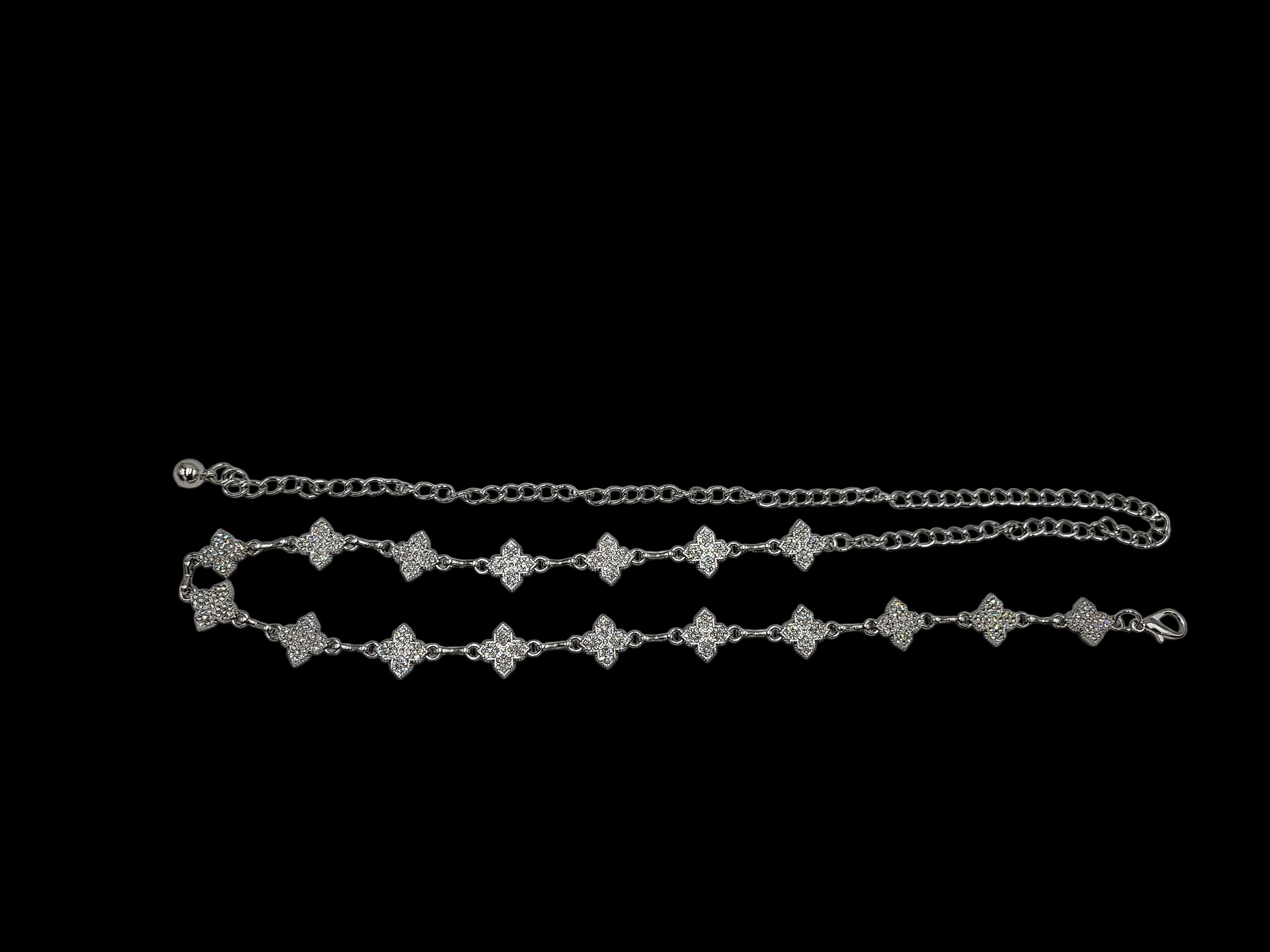 Pasek Ozdobny Damski Metalowy Łańcuszek cyrkonie Elegancki Srebrny