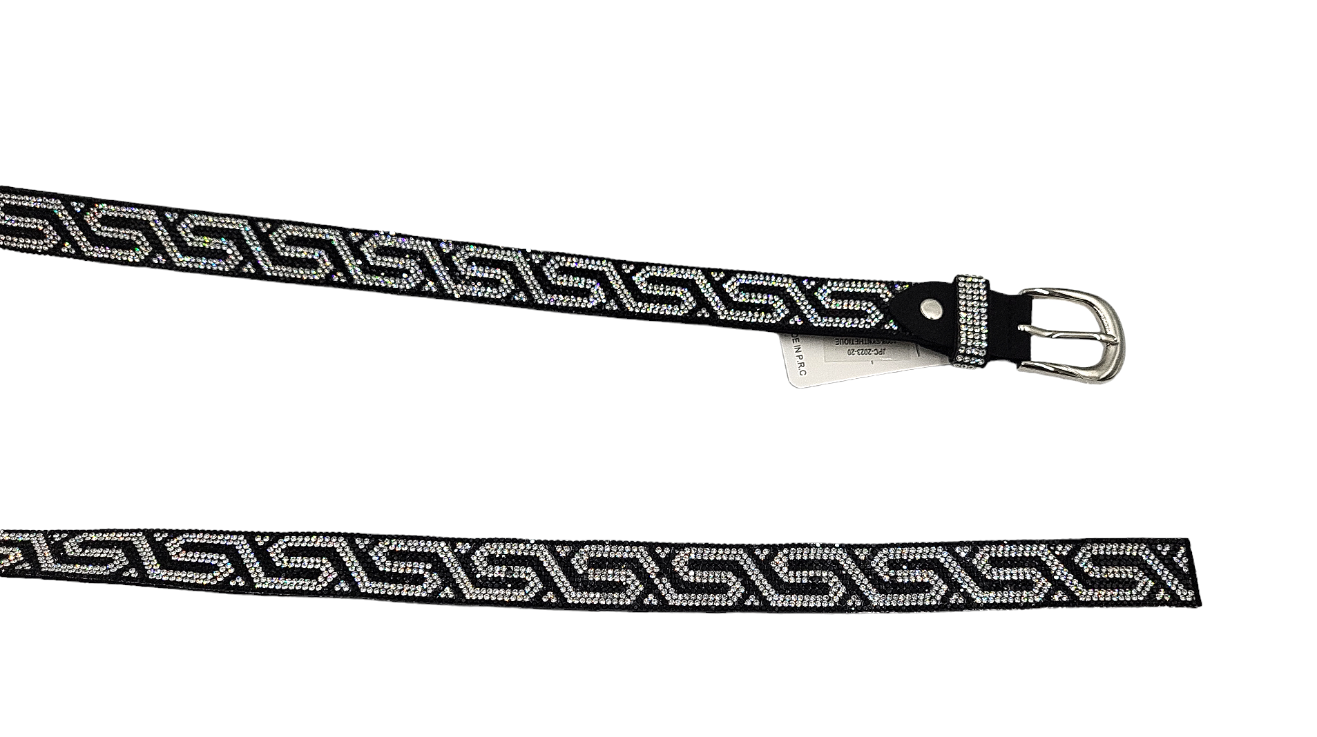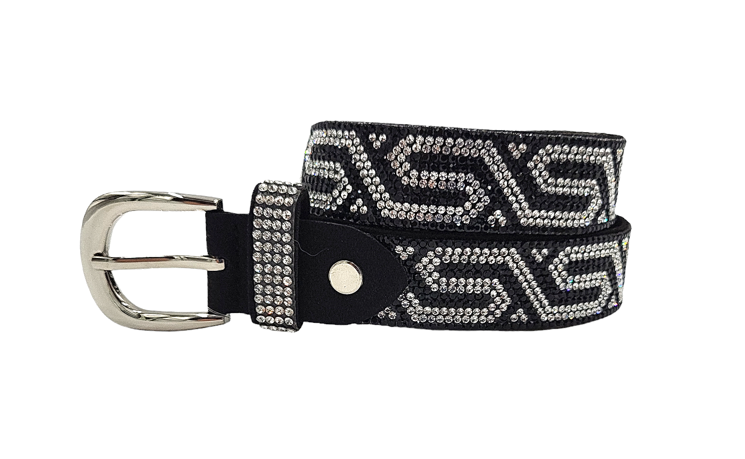 Pasek damski z cyrkoniami z klasyczną klamrą w kolorze srebrnym.
