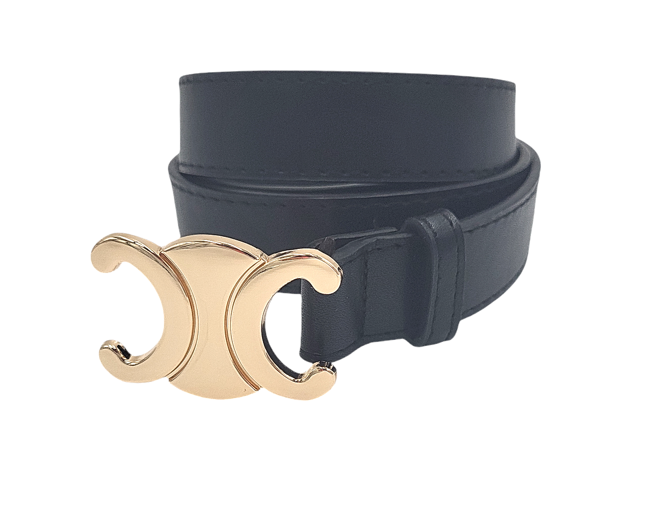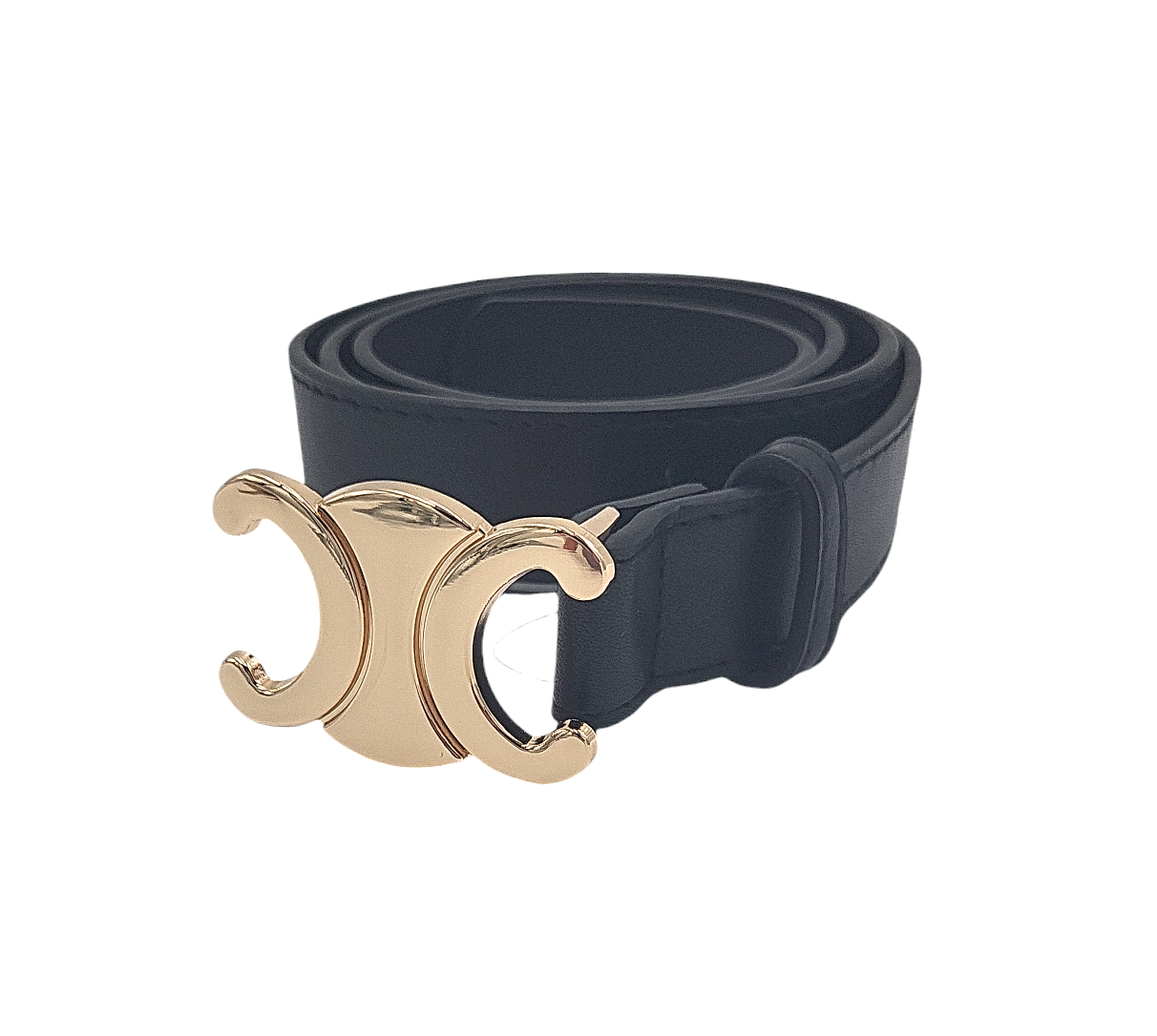 Pasek damski czarny złota klamra