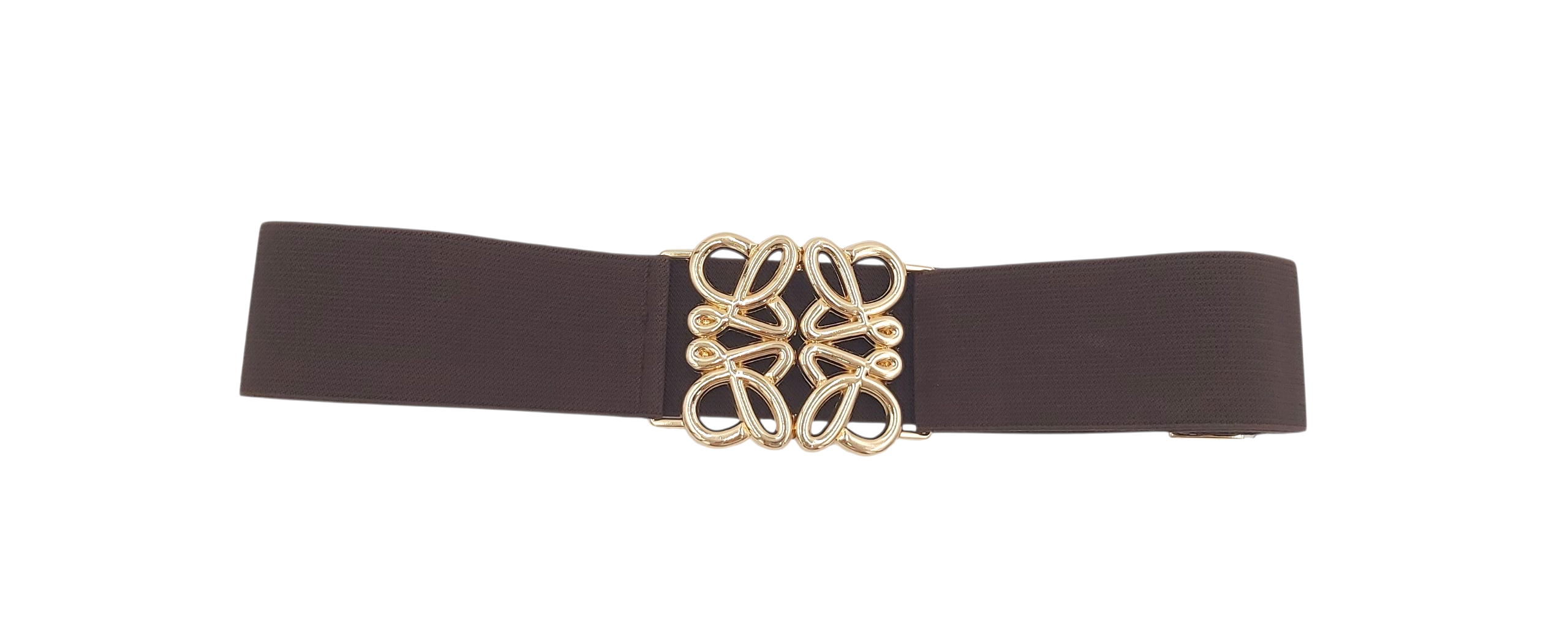 Pasek damski guma ELASTYCZNY czekoladowy brąz złota klamra