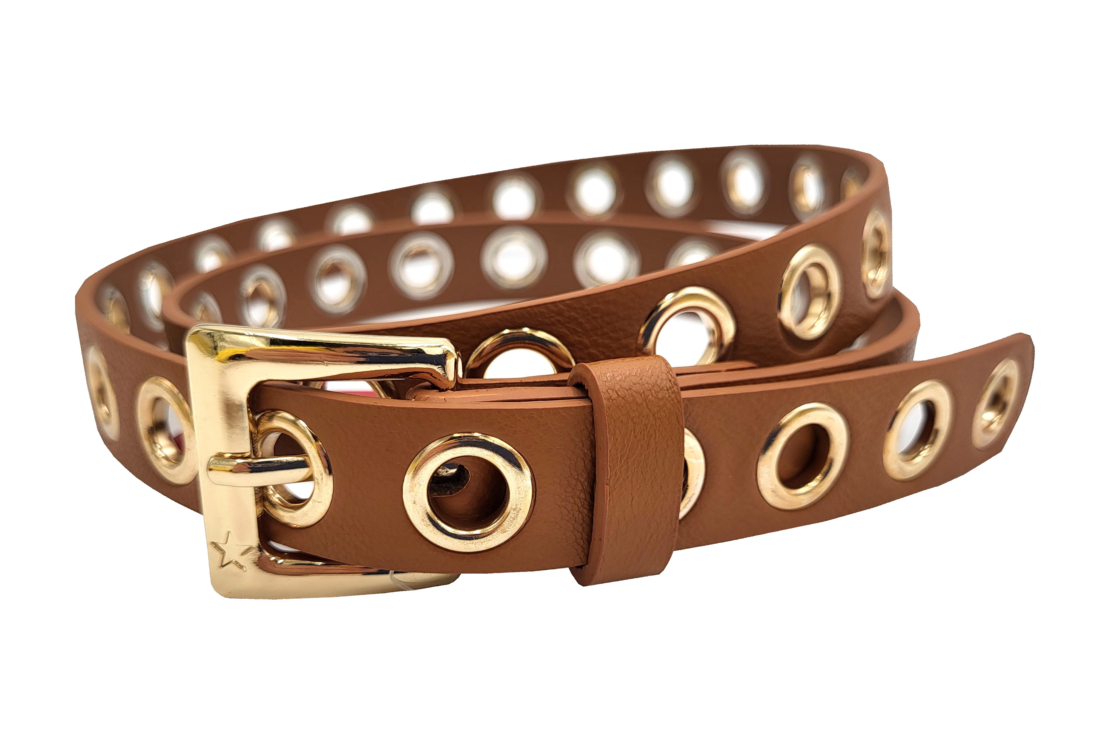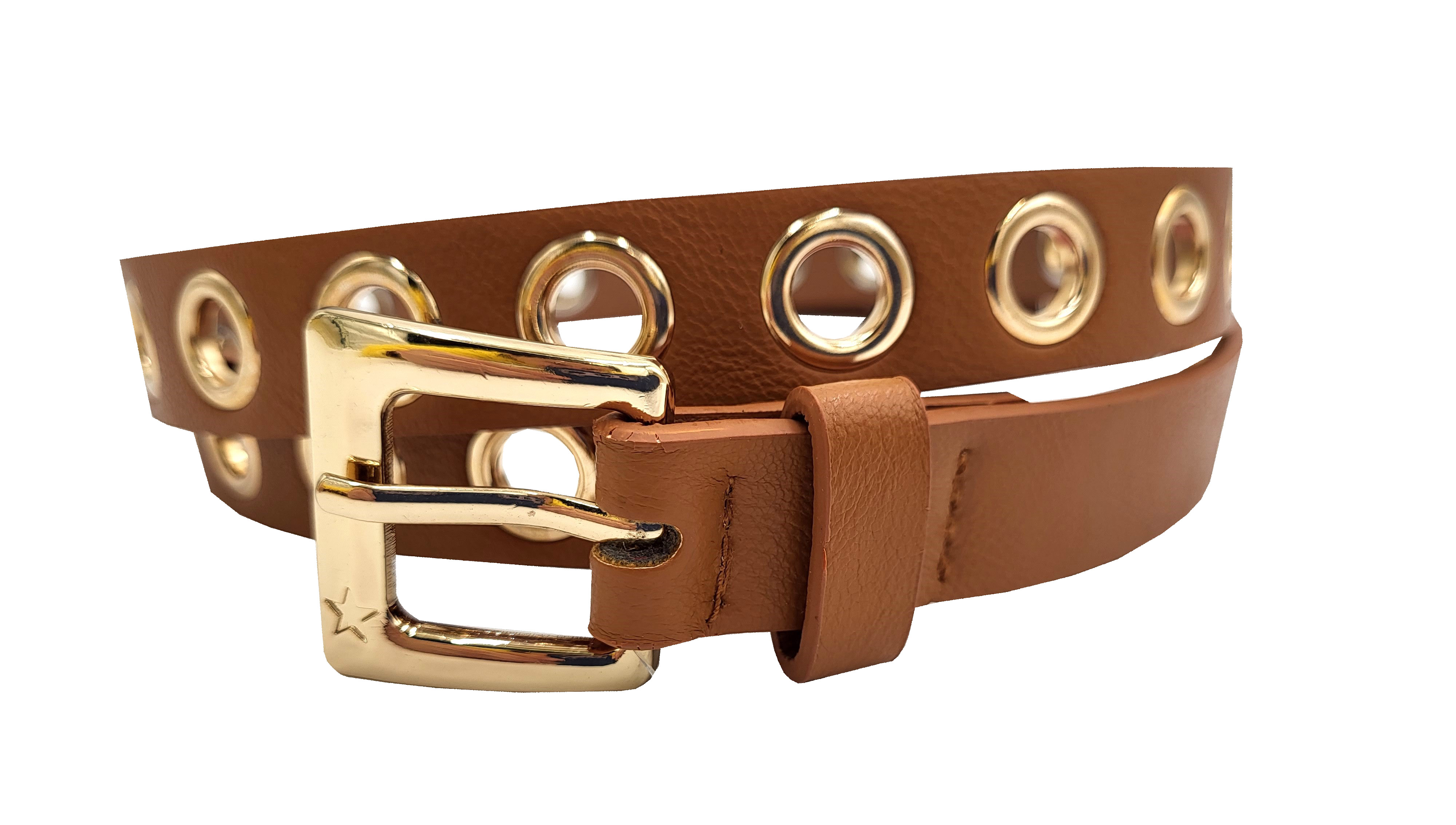 Pasek damski karmel oczka kwadratowa klamra z gwiazdką