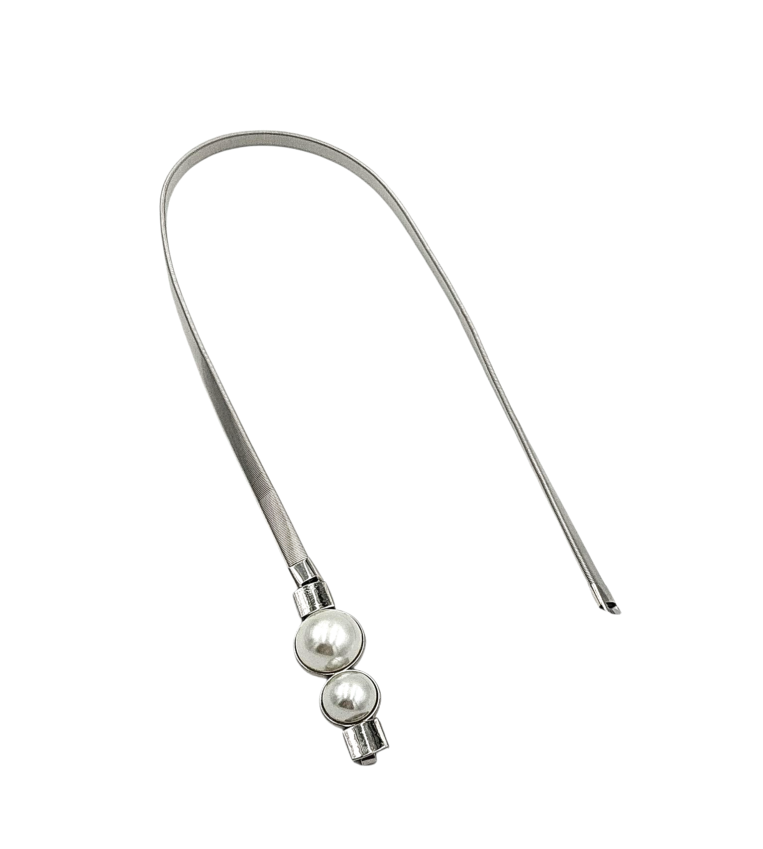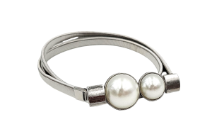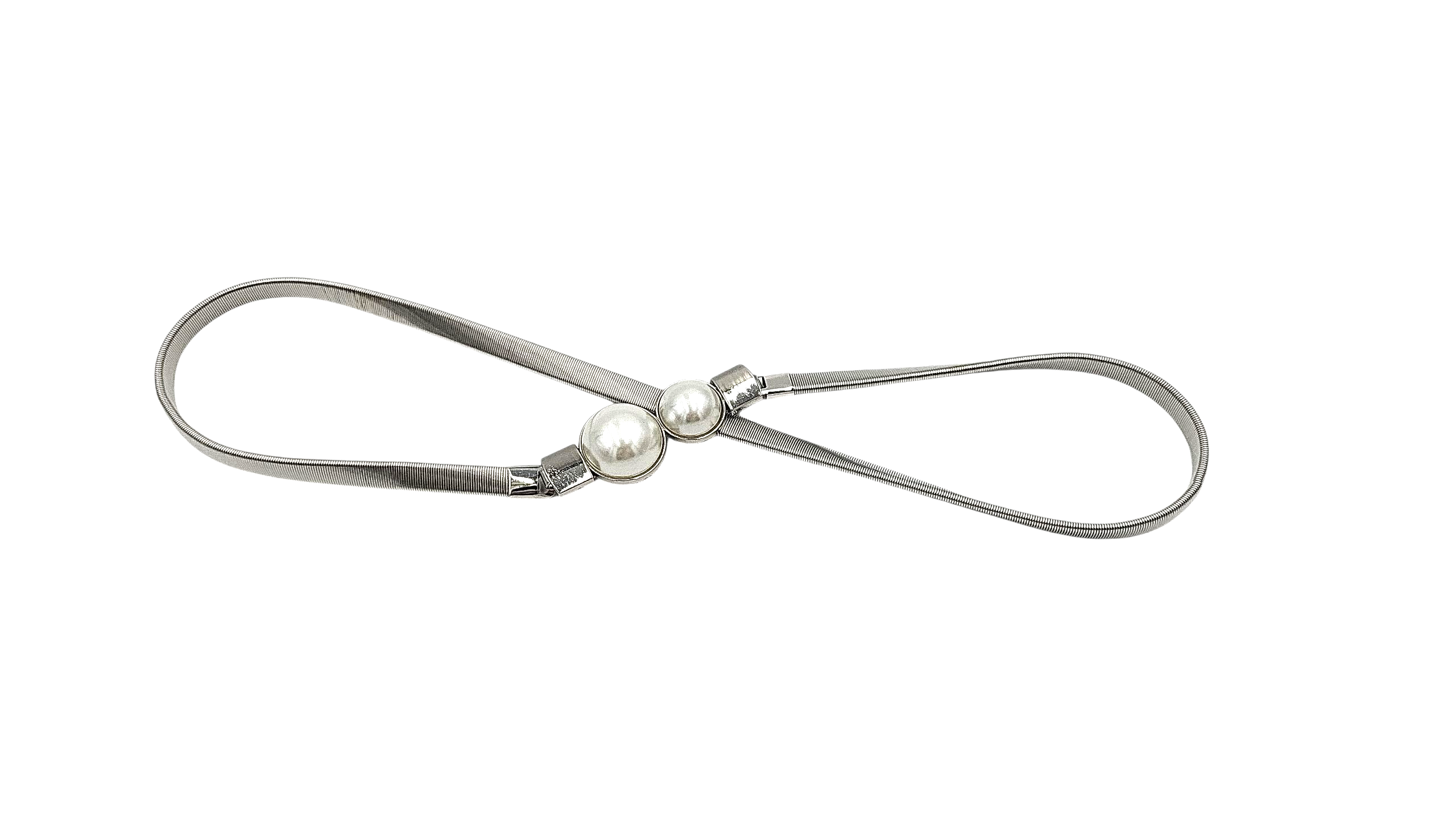Pasek damski sprężynka 2 perły srebrny