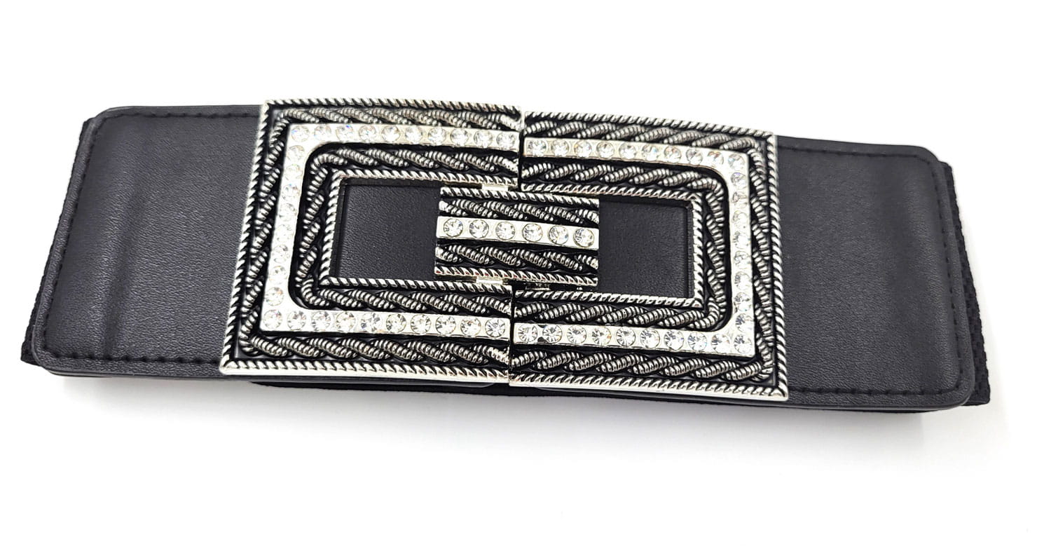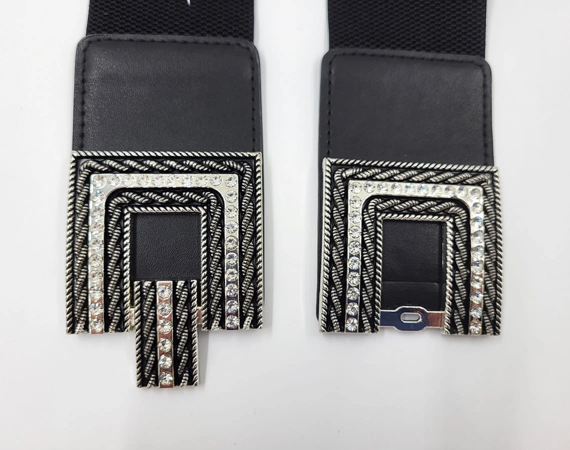 WYMIARY:- Dugość paska bez rozciągania 74 cm- Rozciąga się do 106 cm- Szerokość paska 6 cm- Wielkość klamry 12 cm x 6 cm.- Zapięcie na haczyk.