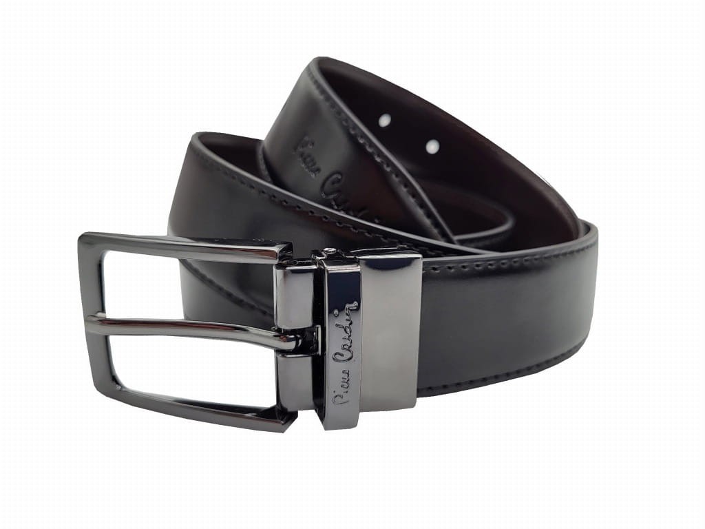 Oryginalny klasyczny pasek męski PIERRE CARDIN. Dwustronny w kolorze czarnym i brązow.