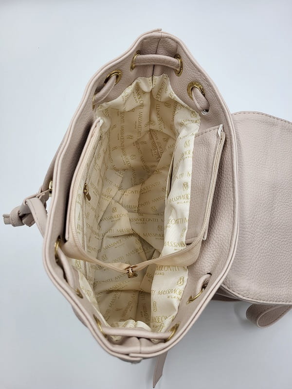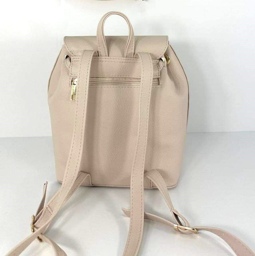 Plecak damski wykonany jest z wysokiej jakości skóry ekologicznej w kolorze beżowym.
